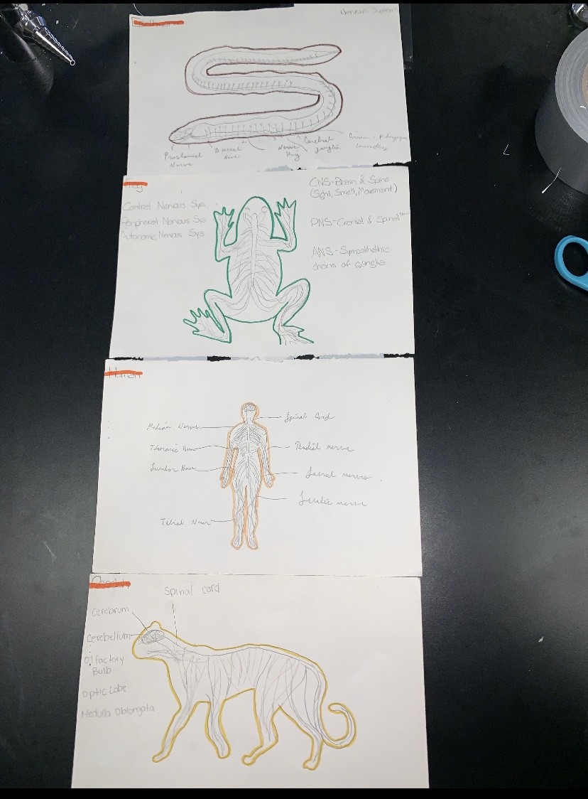 For Q3's benchmark, we were tasked to choose a specific system and learn about it by comparing the anatomy of other animals. For our group, we had the excretory system. From an anaconda, earthworm, human, and frog I've learned a lot about how the system can vary depending on the size, function, etc. I also learned what and how to create a cladogram, which helps differentiate and compare what they have the same and what's different. From our final product, I wonder how certain systems relate to the other in our bodies.