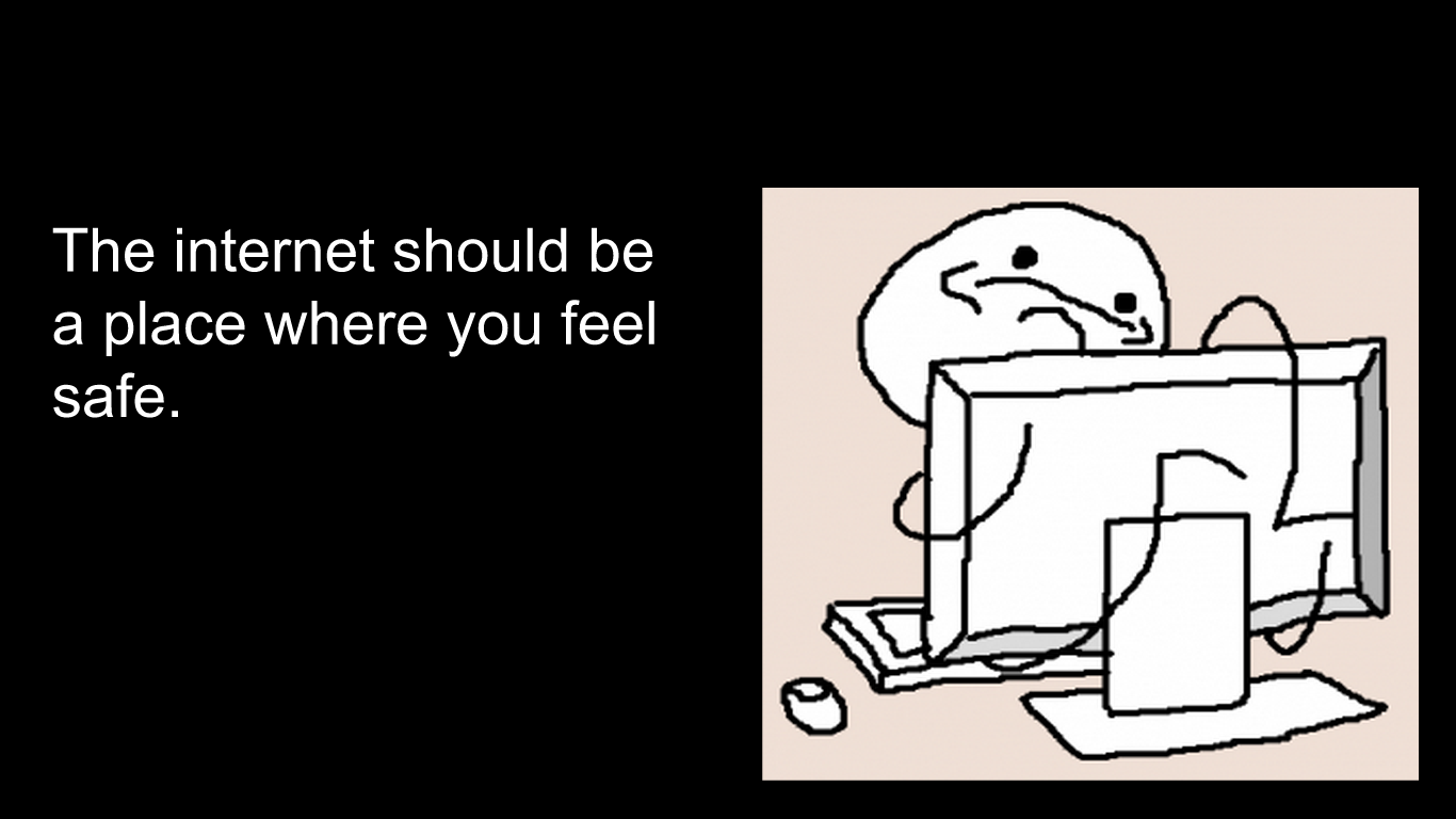 I chose this picture because it shows that this person actually feels comfortable on the internet and I think it should be that way for everyone. The internet should be more of a place where you socialize with people and make friends not bullies. If everyone made everyone feel comfortable and safe, the internet would be a better place. Meaning more people would be respectful digital citizens.