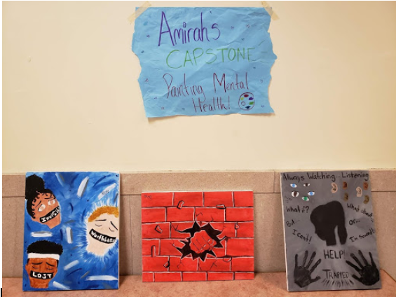 What I did for my project was paint a series of paintings depicting how mental health affects students at SLA. I like to consider myself a bit of an artist, I'm going to minor in studio art in college. I myself suffer from a few mental illnesses and one of my coping skills is painting. So, for my capstone, I decided to survey students in SLA about how mental health affects them and I turned their responses into paintings. I made sure to survey students from each grade so that my paintings are representative, and then I took their responses and put them in a painting. With these paintings, I hope to raise mental health awareness as well as help my peers understand how mental health affects people and their everyday life. Please enjoy and spread your new found knowledge! Thank you.
