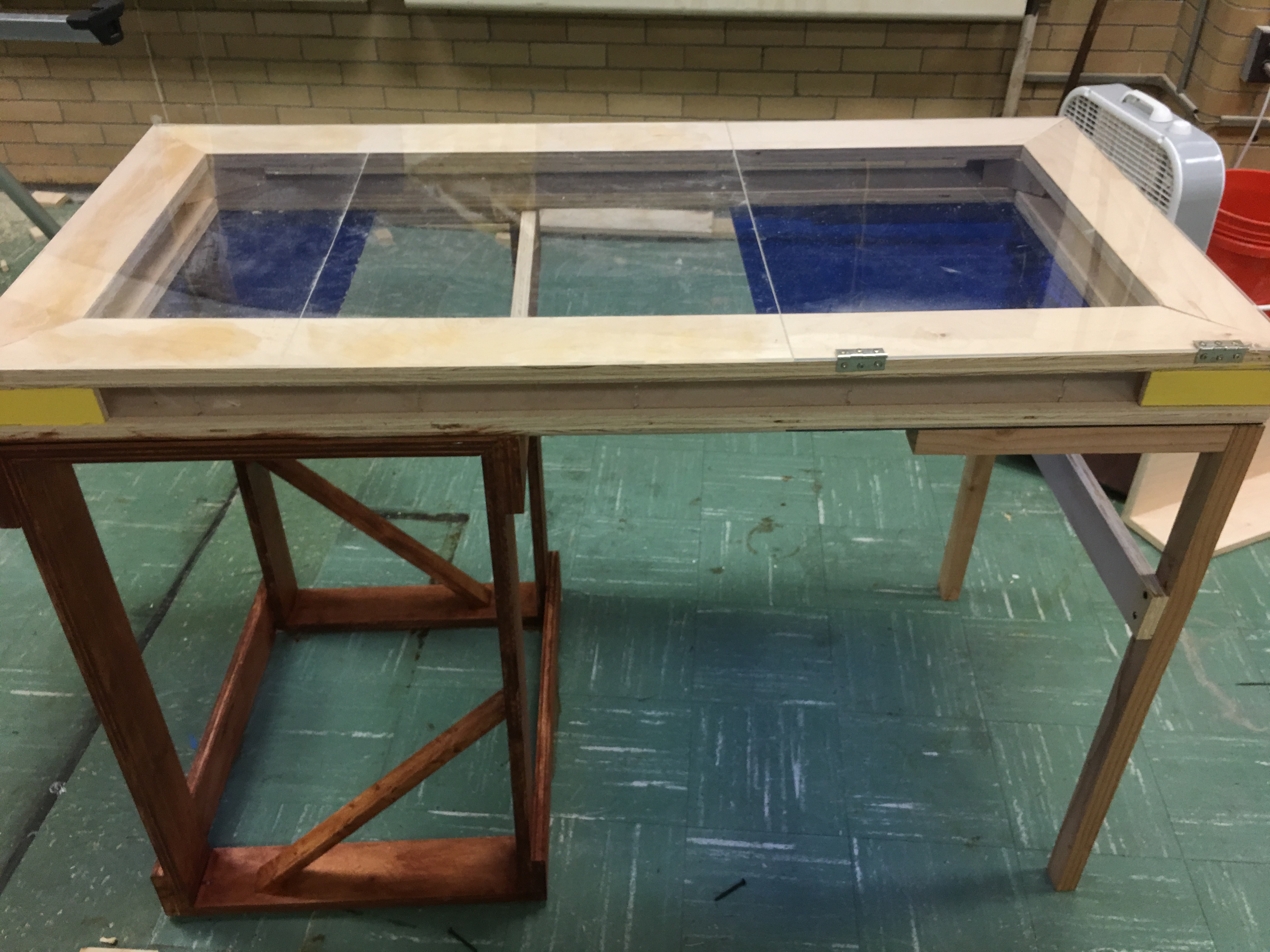 Hello, I am one of the members of Green Top Landscaping, and I am here to tell you about our own green design initiative. Here at Green Top Landscaping I have designed and constructed a desk that serves as a growing space for plants and work space for our client, Ms. Isakowitz. For our client we delivered a green addition to her classroom, that adds a modern touch to the room itself and her work space. Our client wished to have a desk that could both serve as a spacey and efficient work space, since as a teacher she needs it for grading and other such teacher business, and as a lively space to add greenery to her room and her area. So we gave her just that. To finally reach this point it took weeks of careful planning and construction, but there does remain some additions to that the desk.