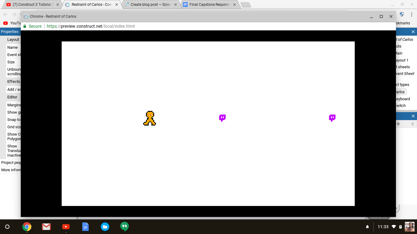 Based on the popular games "The Binding Of Issac" and the original Legend of Zelda games, it is a top down survival game where the objective is to defeat as many enemies as possible before all of your health is depleted. The images you see are some I took during the creation of the game. During my presentation People will be able to the firsts to play the game.