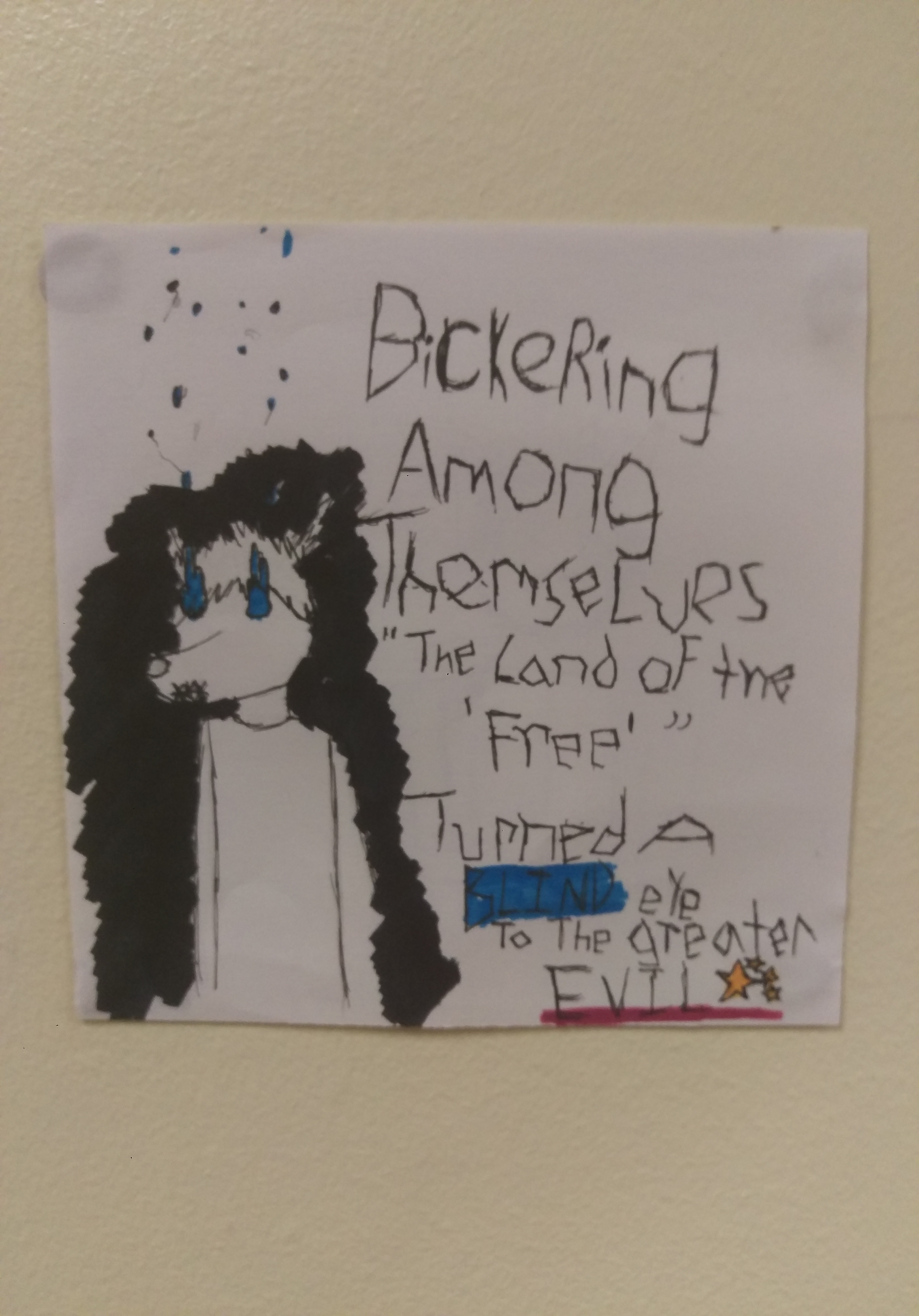 So, when I set out to make this I wanted to make a piece that called out America. We spend all this time worrying about "Diversity" and Gender "Politics". Little said in the news, China had a genocide, hey, there are people i the east getting aids because, up to date vaccines, who needs those!? We live in a world with much greater issues than what you want between your thighs, or what animal you think you are spiritually. We live in a world with bigger issues than what group is offended by what word. Social Justice has gone so insane that it's killing itself, yet, North Korea is waving nukes around, and we might end up in a war that could ruin America even more than racism or misogyny. In the well fitting word of Frank, "It's time to stop!"