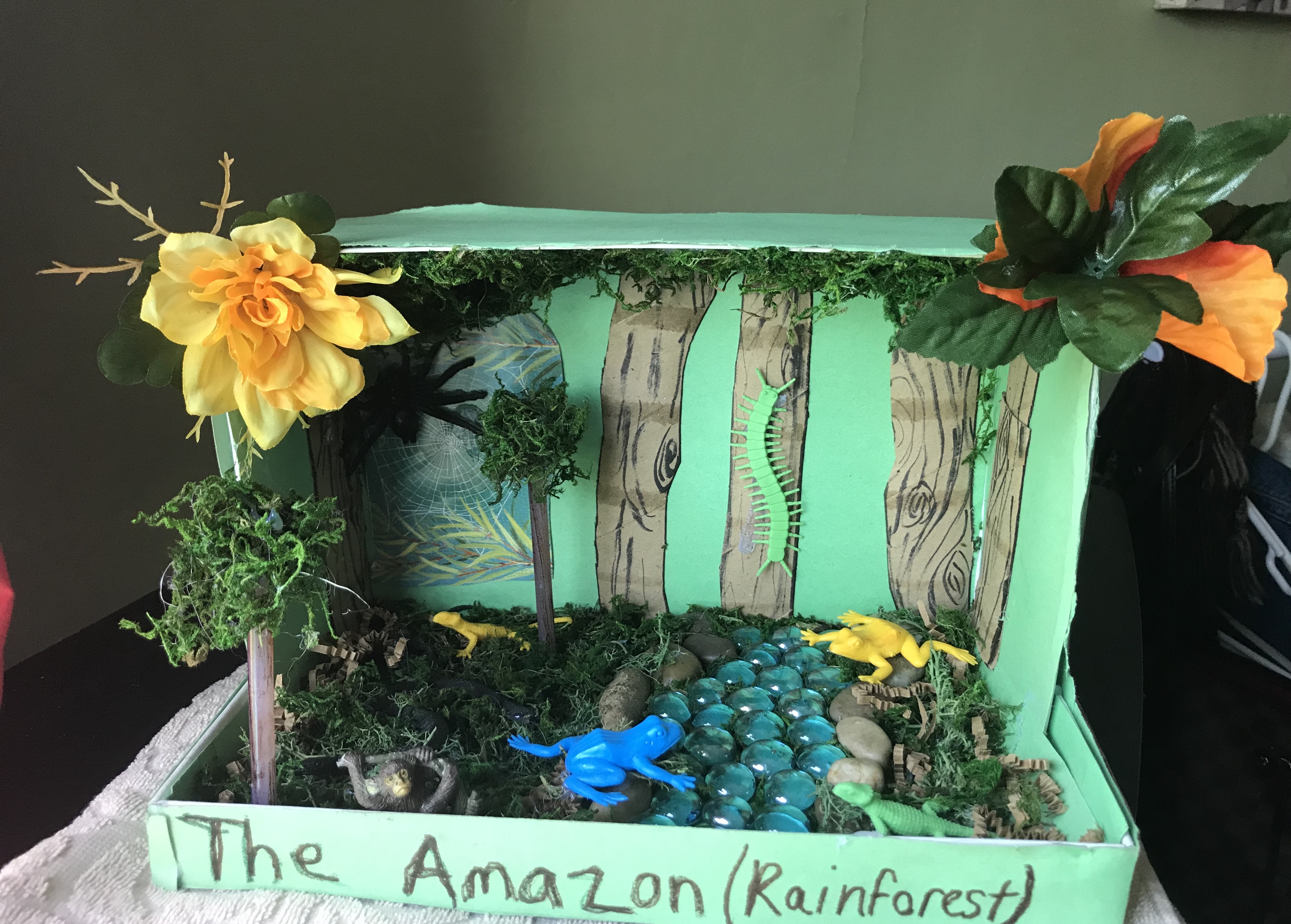 For my quarter 4 biochemistry benchmark, we were assigned to choose a specific biome of our choice and research it focusing mostly on unique issues facing the biome. While completing this project, a lot of information about my chosen biome (the rainforest/Amazon) stood out to me. It was interesting to read because I wasn´t aware of how much damage people were causing our trees, animal and our world itself. Upon completion of the project, I enjoyed being able to make a physical display of the biome and having a chance to show my creative side to my classmates and teachers.