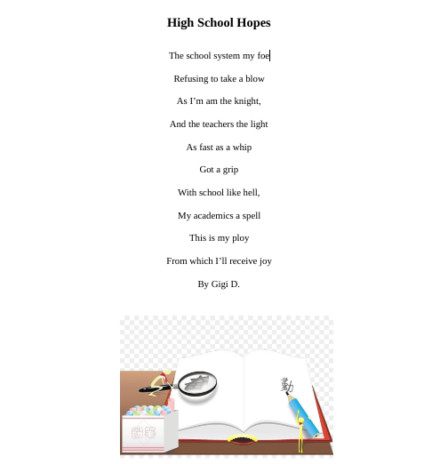 High School Hopes Posted by Gisella Dukes on Wednesday, November 14, 2018 at 8:36 am Screenshot 2018-11-14 at 8.35.58 AM Comments No comments have been posted yet. Log in to post a comment.