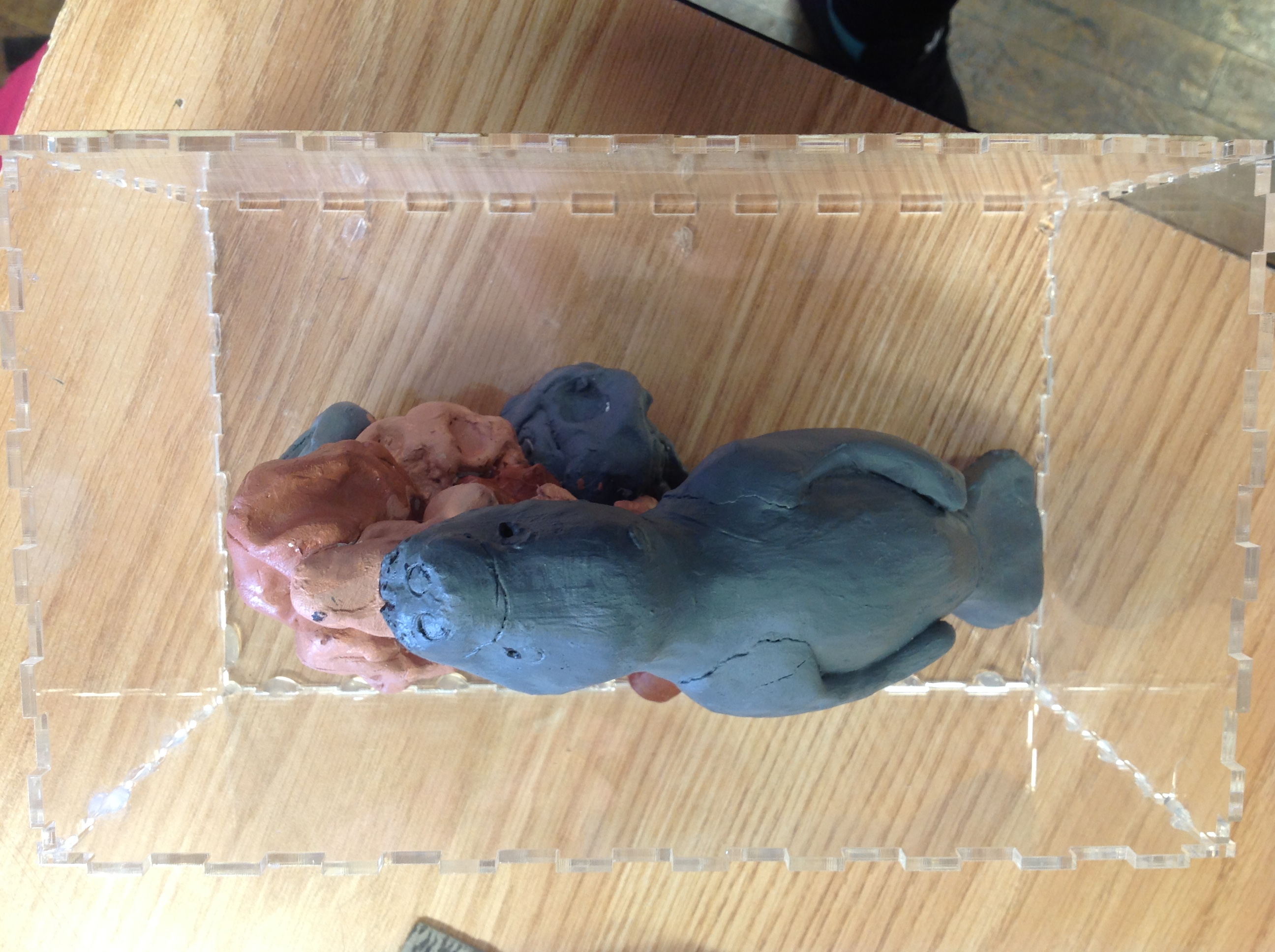 When I was in the process of choosing what type of Multi Media I wanted to create I wanted to chose something that showed who I was in a way and something that would challenge me. I looked through the materials I had and saw clay. I chose to do clay because is a very hard material to mess with for multiple reason. Once I had my material I started to think about what I wanted to make. I knew I wanted it to relate to me in some way so I decided to do something with the ocean. I looked through animals and then picked to do a manatee. As I drew a sketch of what I wanted to sculpture to look like I wanted it to show what a manatee looks like and its environment. I believe that with my sculpture the view can clearly tell the message in the sculpture and what animal it is. While I made my sculpture I got to understand how clay works. My work fits into contemporary art because it's abstract and different.