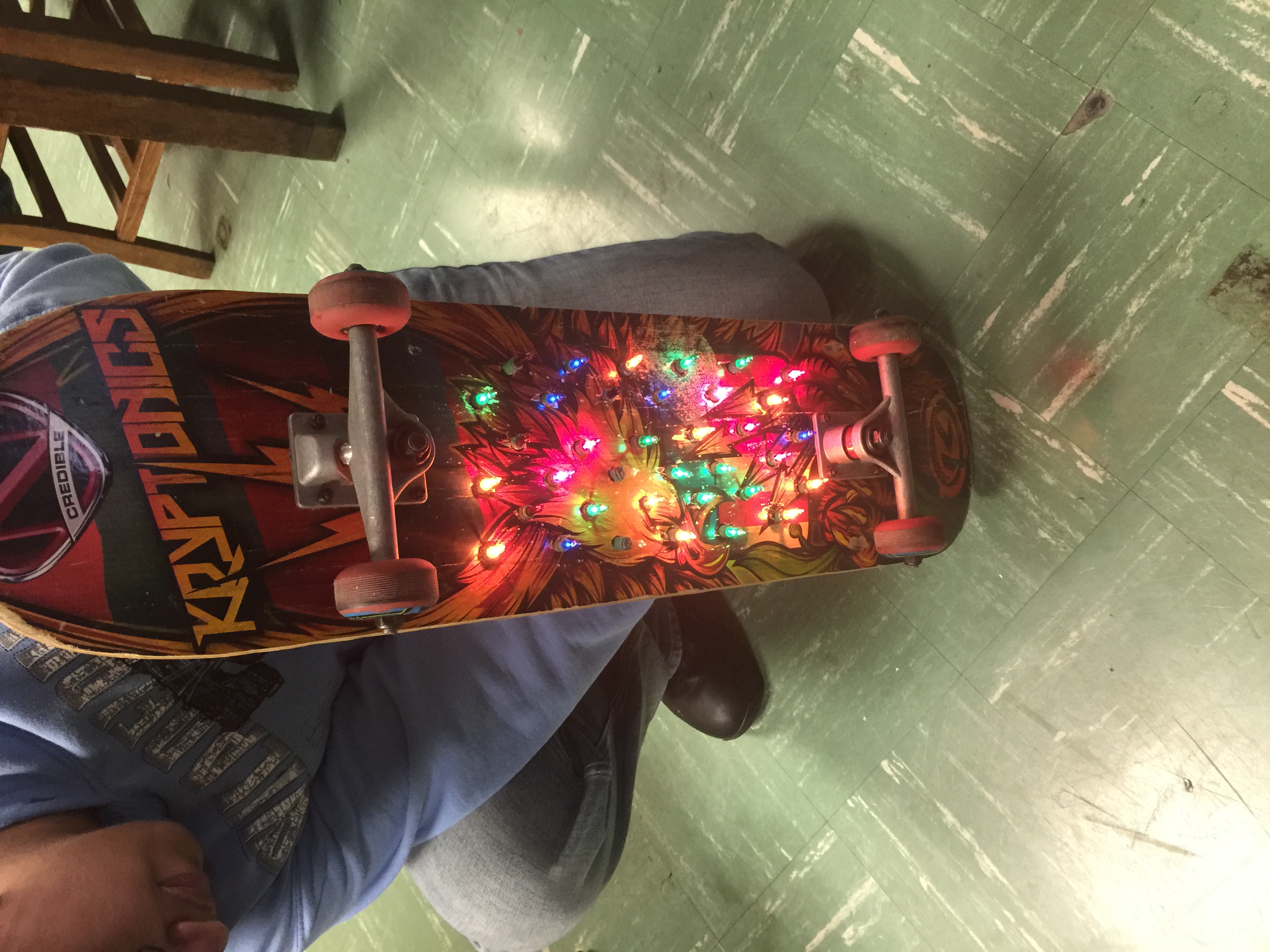 For my design, I chose to do this design because I wanted to make something that made a story. When I was in the 3rd grade, I used to go to my neighbors house after school because my mom worked late and my neighbor was willing to take care of me and my older brother, Nicholas. One day my brother, my neighbor’s son, and I were hanging out outside in my neighbor’s backyard when I noticed they had a skateboard. Beforehand, I had never seen one and was very interested in trying it (Oh, trust me, like all stories… it gets dark) so I jumped on it. As soon as I kicked the ground to start, I slipped off and fell right on my elbow fracturing it. After 4 months of wearing a cast and pretty much ruining my baseball life, I got my cast off and vowed never to ride again.