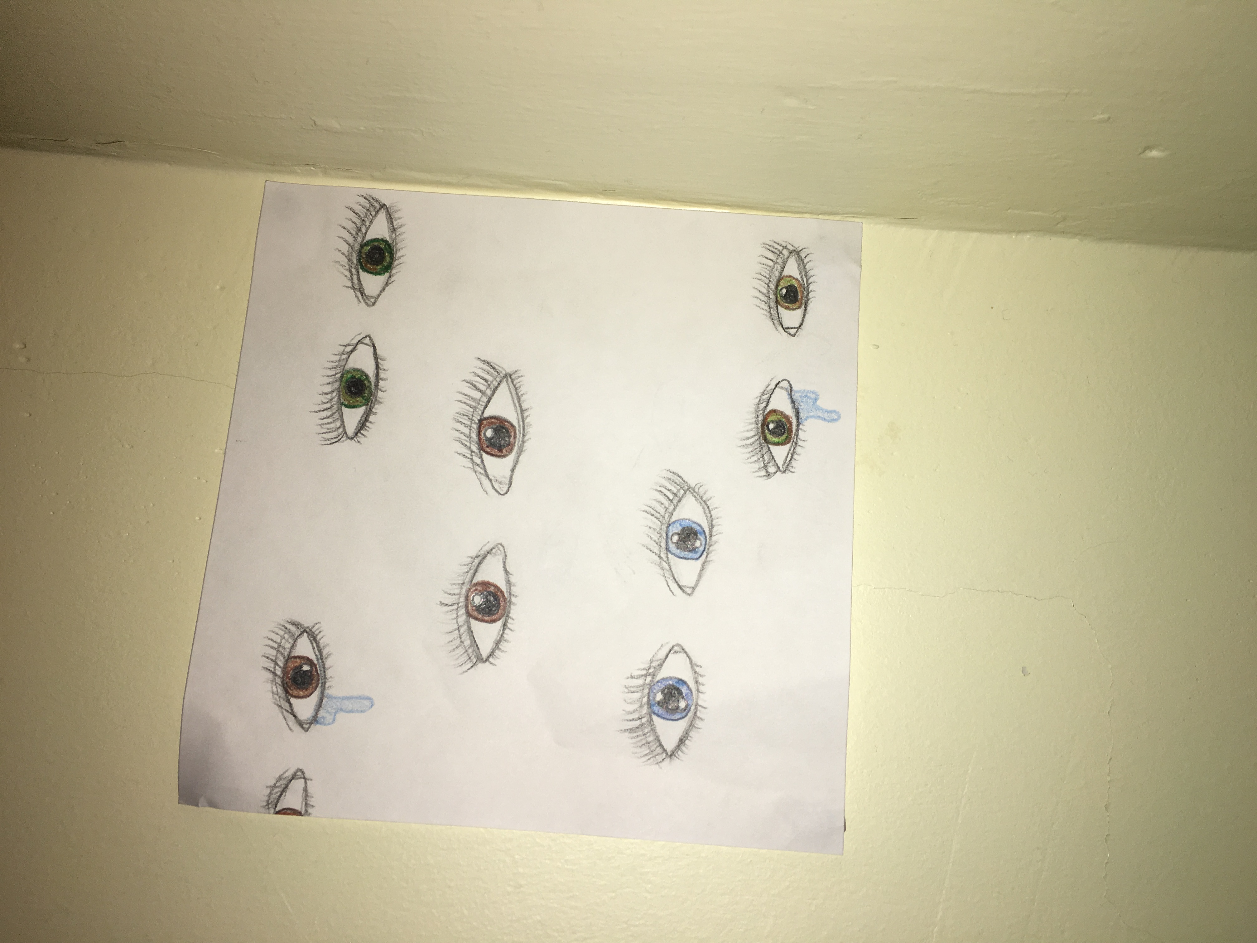 The reason why I put my artwork on the corner of the hallway is because I it’s somewhat out of sight if you don’t look hard, but it’s always there. You wouldn’t think if you're talking about something or someone and someone walks by and over hears. They will and up telling other people. You never know when you are alone.