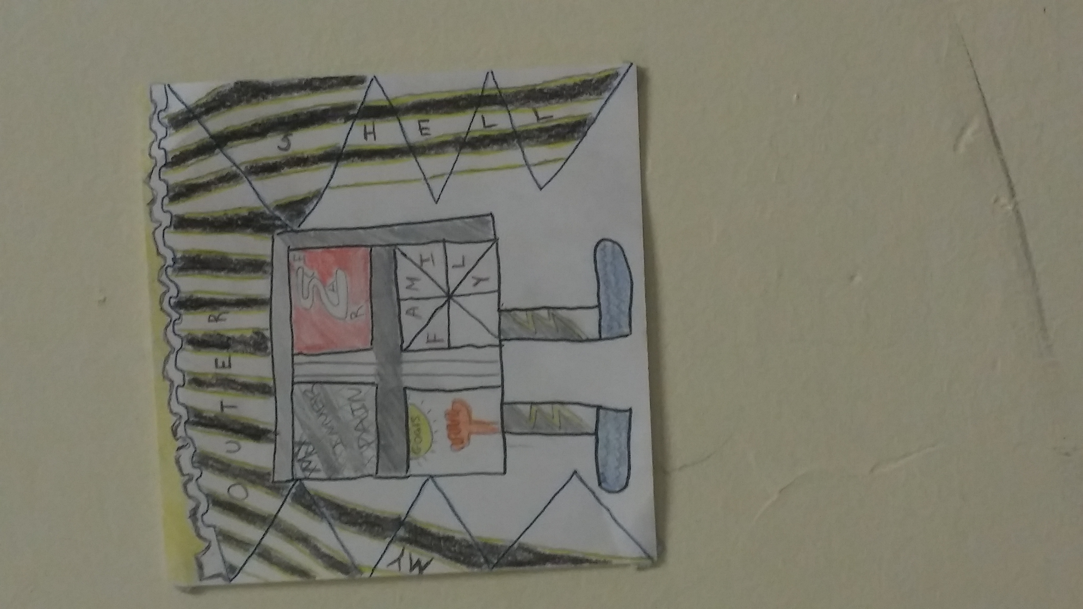 My outer shell. This artwork represents about how I carry myself each and everyday because I wanted to let the outside community to know that what you see on the outside is just a mask. My art was inspired by a song and the moral to the song was to not be afraid to let the world know who you really are and not to be afraid to present and be you 24/7. With that being said I had chose a open space to represent what my goal was so that I achieve the goal I had set up for myself. My art had changed my perception on art in general by making my mind open up a little bit more because now when I see graffiti on the walls I see expression depending on what the graffiti says and how it's displayed. I'm kind of glad now that I have did this project because I don't think my perception of street art would of changed for awhile without out this project.