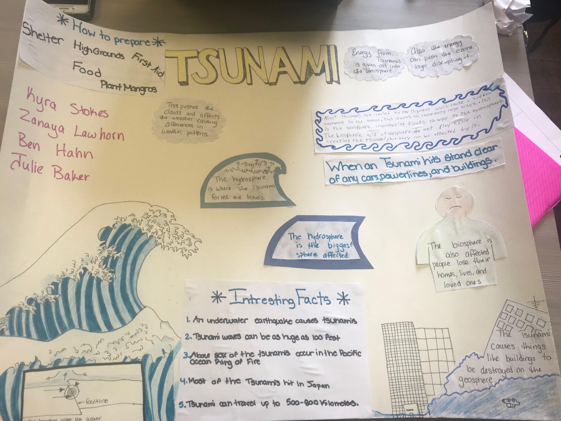 Zanaya Lawhorn Ms.Aziz Sept 13 , 2018 Reflection For my [project the natural disaster that my group chose was Tsunamis . A tsunami is a high sea wave that is caused by an underwater earthquake .These wave can be as tall as 100 fee and can travel from 500-800 Kilometers . These tsunamis can throw the atmosphere off balance , while damaging the soil that we have here on dry land . Tsunamis also destroy the environment becuase now everything is flooded. A tsunami brings a lot of water energy with it ,which means the pressure is very dangerous it would be best to stay on high grounds away from heavy objects . I believe that tsunamis are natural and their isn't a way to necessarily prevent them but we as people can prepare by having safety plans and having certain area maybe waterproof that can fit large amounts of people . When it comes to natural disasters the best thing we can do to protect ourselves is to stay aware .