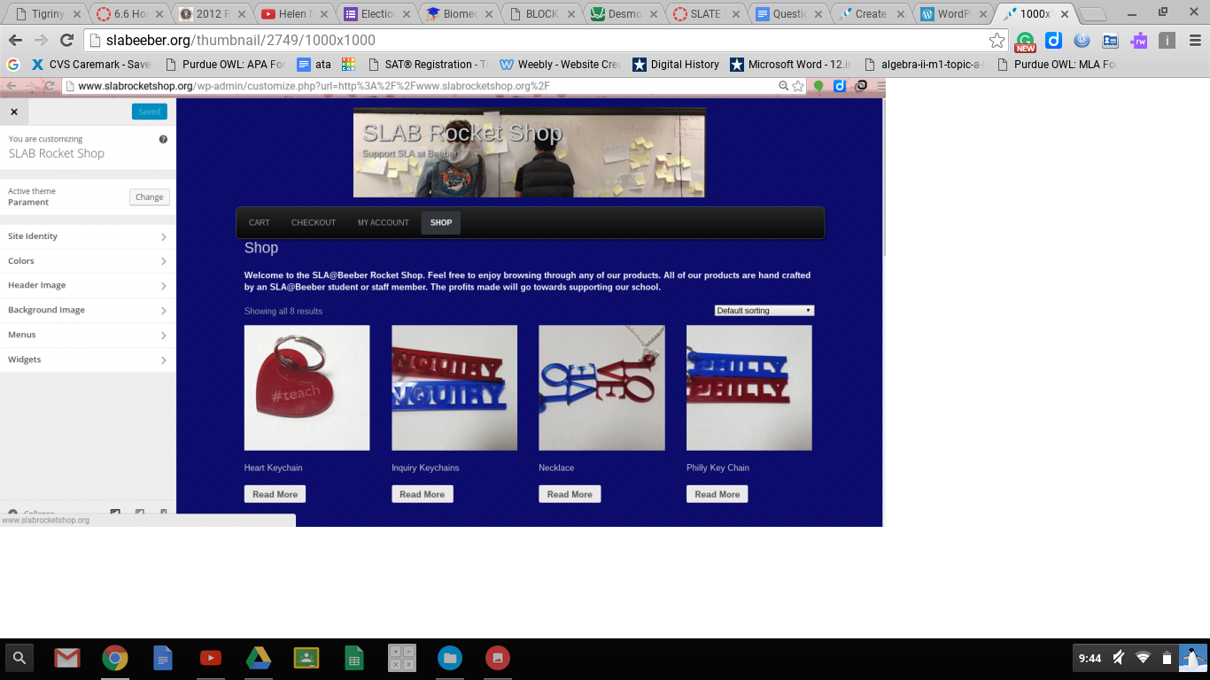 For the third quarter my group and I ( Jaden, Caleb, Tesfay and Cameron) create a website. That people can shop for our school online, and here is the link to our school shop, http://www.slabrocketshop.org/. The online website includes many items on it such as Sweatpants, T-shirt , hoodies, and socks. And also each items have their cost prices under it except the Keychains. The purpose of the project is to make our school more official and we are going to re-update it whenever we get more items.