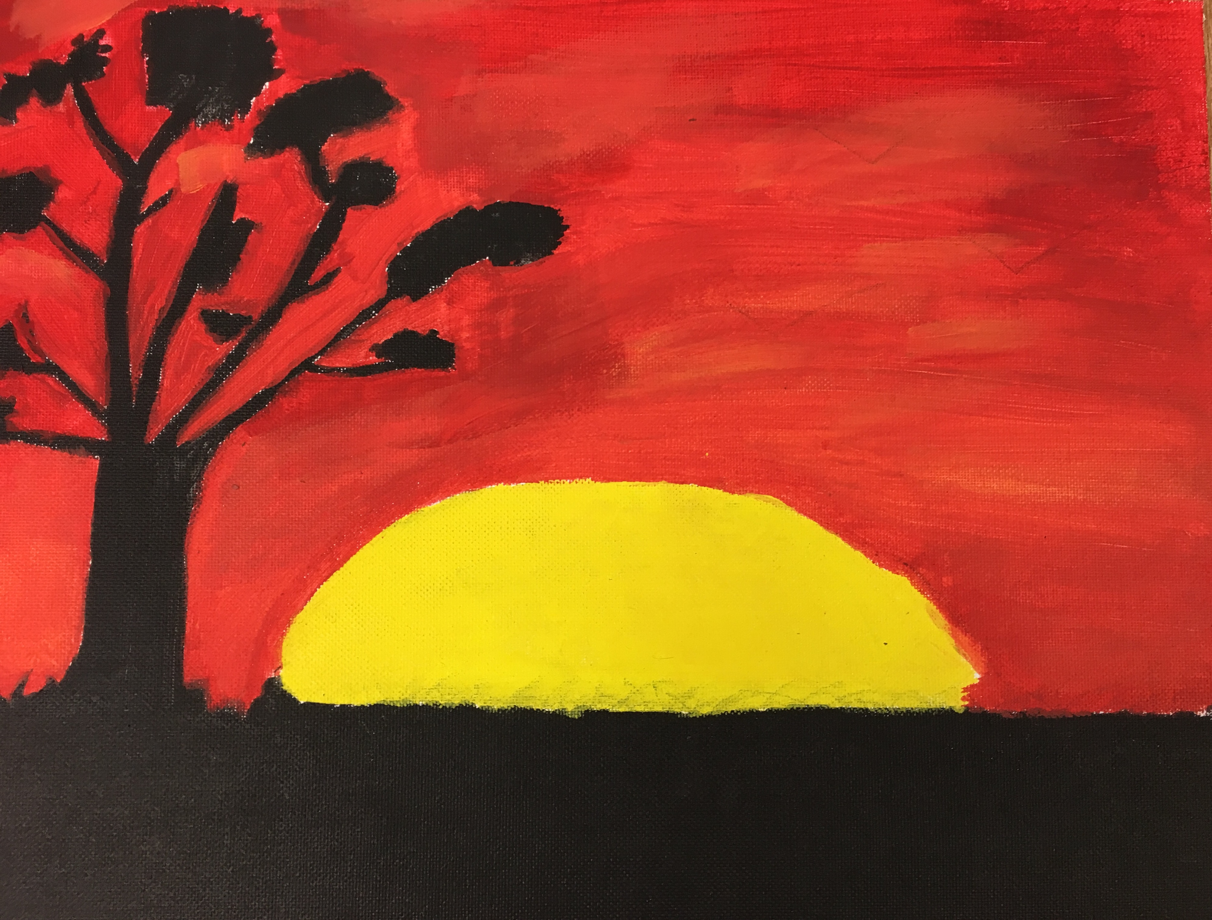 My process for this piece was to complete what I can each day in the given amount of class time we had. I started with the solid black color first since there was no mixing involved using that and then on to the solid yellow since there was no mixing as well. After that was complete was when I moved on to the background because the leftover space which is the background is where the mixing of colors came into place. I mixed the colors on a palette first and then applied it to the brush and then the canvas. There really was no inspirations behind doing this. I just thought of nature and kept going. I just wanted to capture a sunset look and apply a tree. I thought about adding flowers, but I did not think they would fit as nicely. As stated before my image just reflects the world because of the bright colors that are in trend today. I would say that the world and my life is not as peaceful and beautiful as my painting is. To explain that you would have to use a lot more darker colors. My work can impact the world as a goal or to send out a message to make the world calmer or more peaceful. My image can be a representation of somewhere tropical or paradise so, this can give people the inspiration to want to calm and settle down to be able to either view their own world this nicely or to be able to travel somewhere this nicely. Lastly, a really nice technique to use when painting with limited colors is to really make sure you mix your colors well and apply enough color that you needed. I realized sometimes that I would pick up more of a certain color because it was not all that blended. However, a new technique I learned would probably have to be with the background to start painting from top to bottom to capture the colors fading in better instead of corner to corner or section by section. This way the colors really could have been blended better and so you can really distinguish the difference between the different mixed colors.