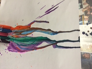 I learned that when melting the crayons it was better not to hold the heat gun too close to the crayons because this would created blobs of the colors to come out. Whereas what I had to do was hold the heating gun away and on an angle to get just drips to come out of the crayons.
