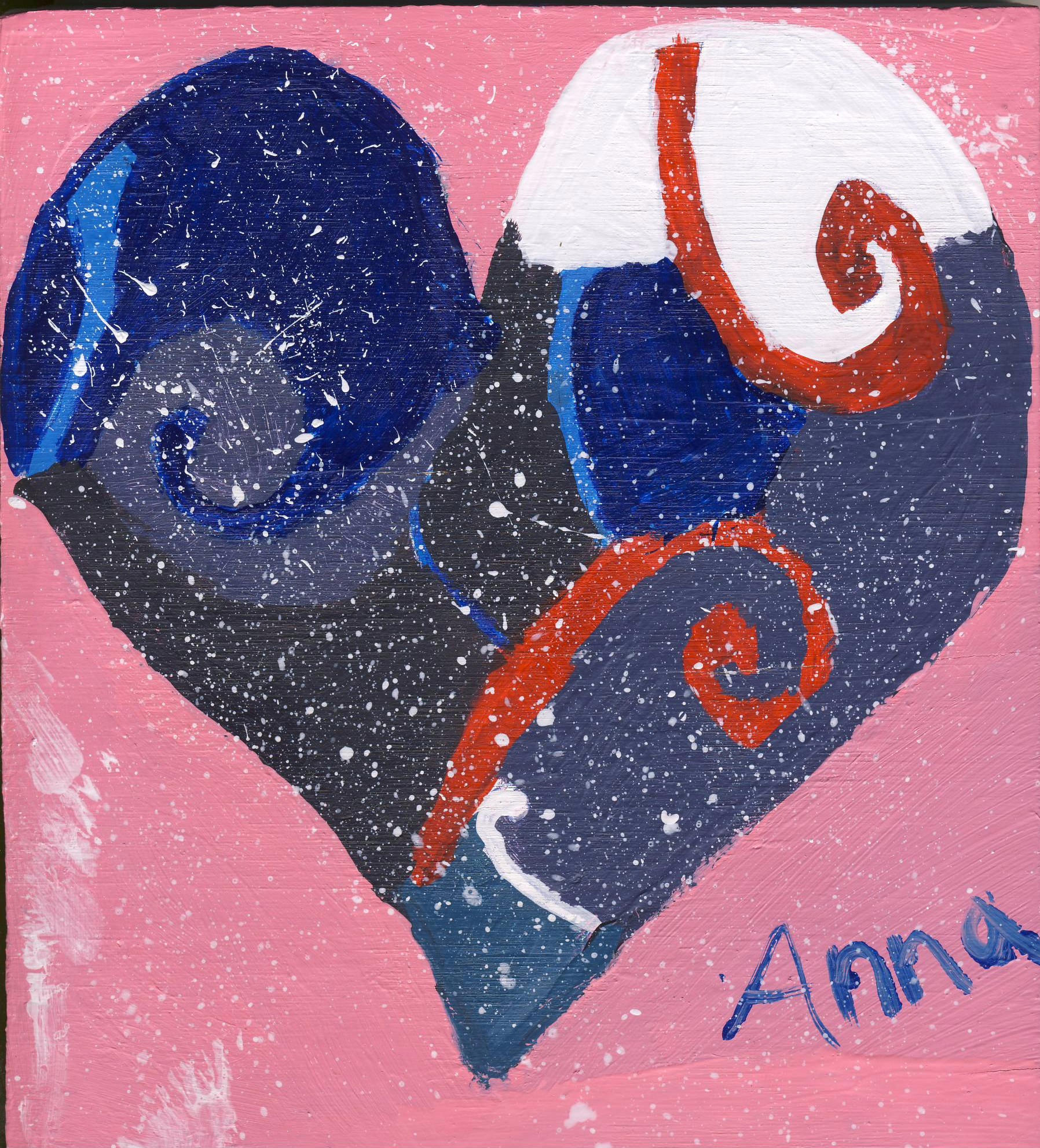 As I started my work I first looked up how to draw a heart with spirals in it. After that I drew it out in my art notebook and transferred it to the piece of wood. I then made the colors I wanted to use and put it on the heart that was in my notebook. After that I painted the heart and used the splatter technique. My work shows that I am lost and all over the place but even with that I am still moving on. When I started to talk to my mom again I didn’t know how to feel I felt lost with no direction. I feel like my work can show many young adults that they can do anything even if they aren’t good at it. When making the painting the technique was important I strategically chose not to have the spirals in a specific place, I had them all over the place to show that I was feeling scattered. I was excited to learn how to do the splatter paint. I watched a lot of YouTube videos so that I could see what other people did while using the splatter paint technique.