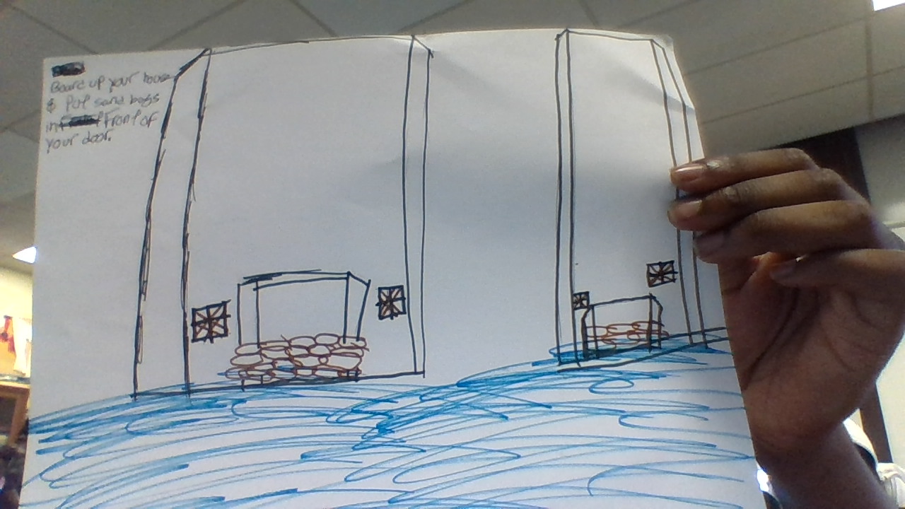 The meaning of my work is showing that there is always someone watching you no matter where you are. This inspired me because I enjoy drawing tribal art that includes a lightning aspect. I choose to put my work in this location because people walk past the wall that it is on everyday. This project changed my perception of art because it taught me that art can come in many different forms. This project changes my perception of art as I travel the city because people will hang art anywhere but you won't know what the meaning is.