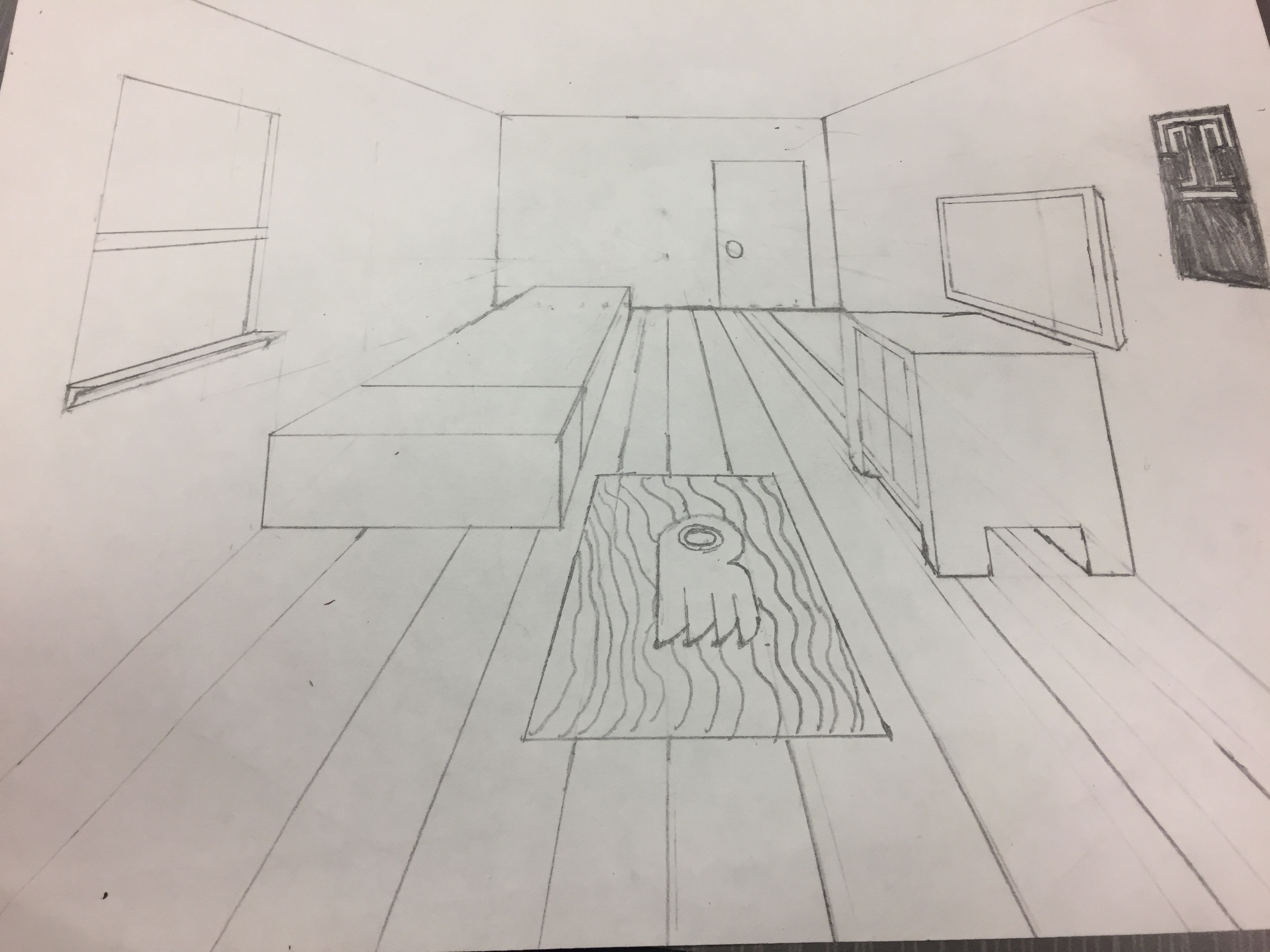 The room I drew was made in one point perspective. One point perspective is the view of a room as if you were inside the room.
