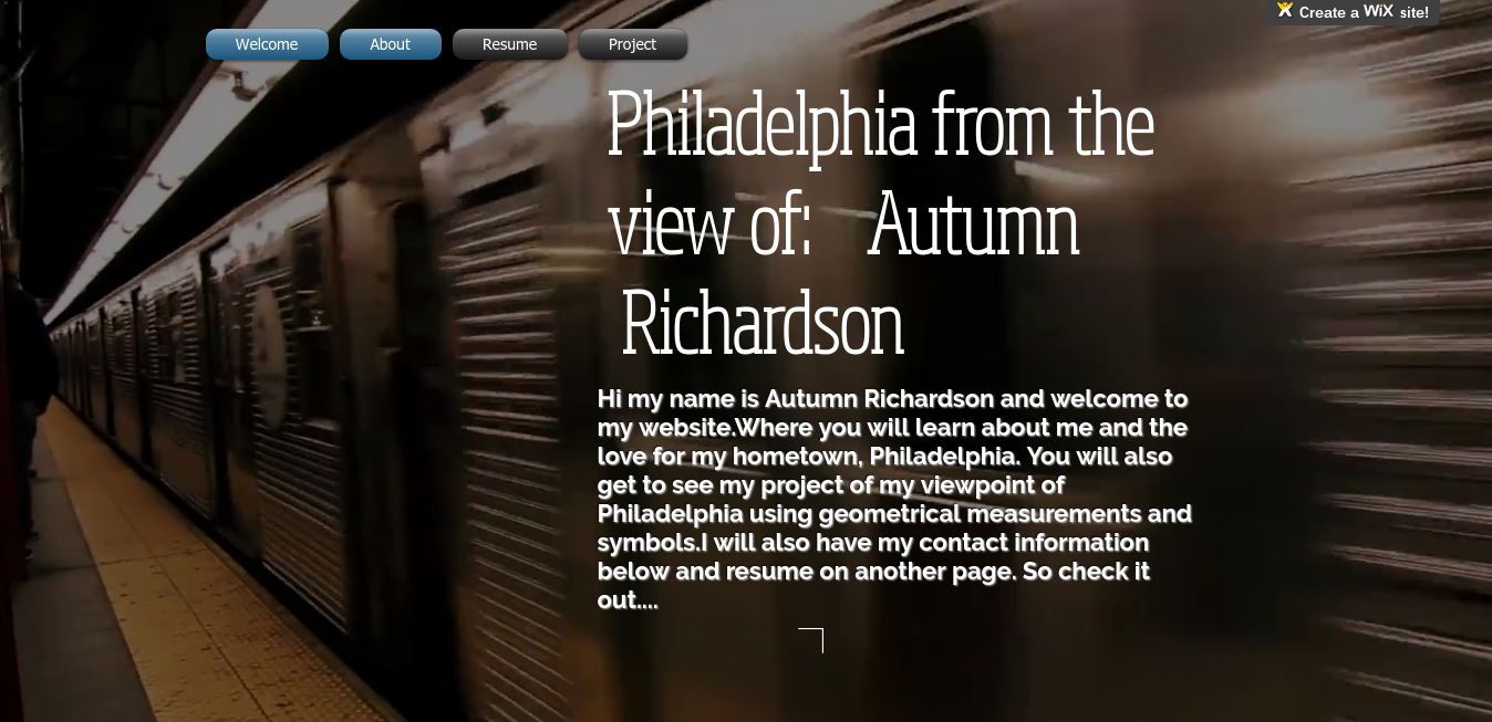 Slide 2:For my website I decided to talk about my view of Philadelphia. I have never created a website before so this was definitely a first. The goal was to make an efficient website that included a project page, about me page, a resume page, and a welcome page. For my welcome page I included a brief description of what you would see if you visited my website.