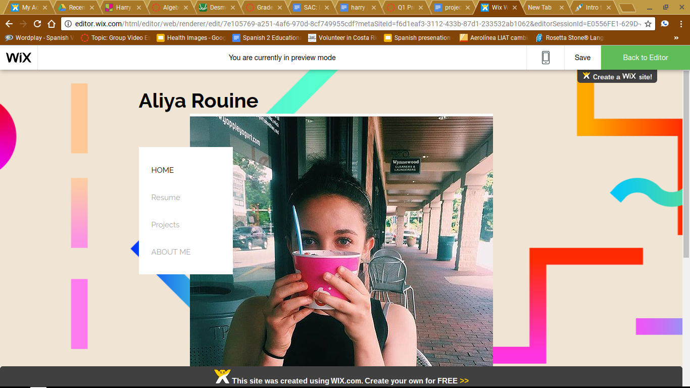 I made my website using Wix. It was a website I have not used before and I wanted to try it out. Personally I am not the greatest when it comes to creating your own website so in the beginning it was hard. After some exploring of weebly got the hang of things. Something I hoped to learn was how to actually make a website presentable for people viewing it.