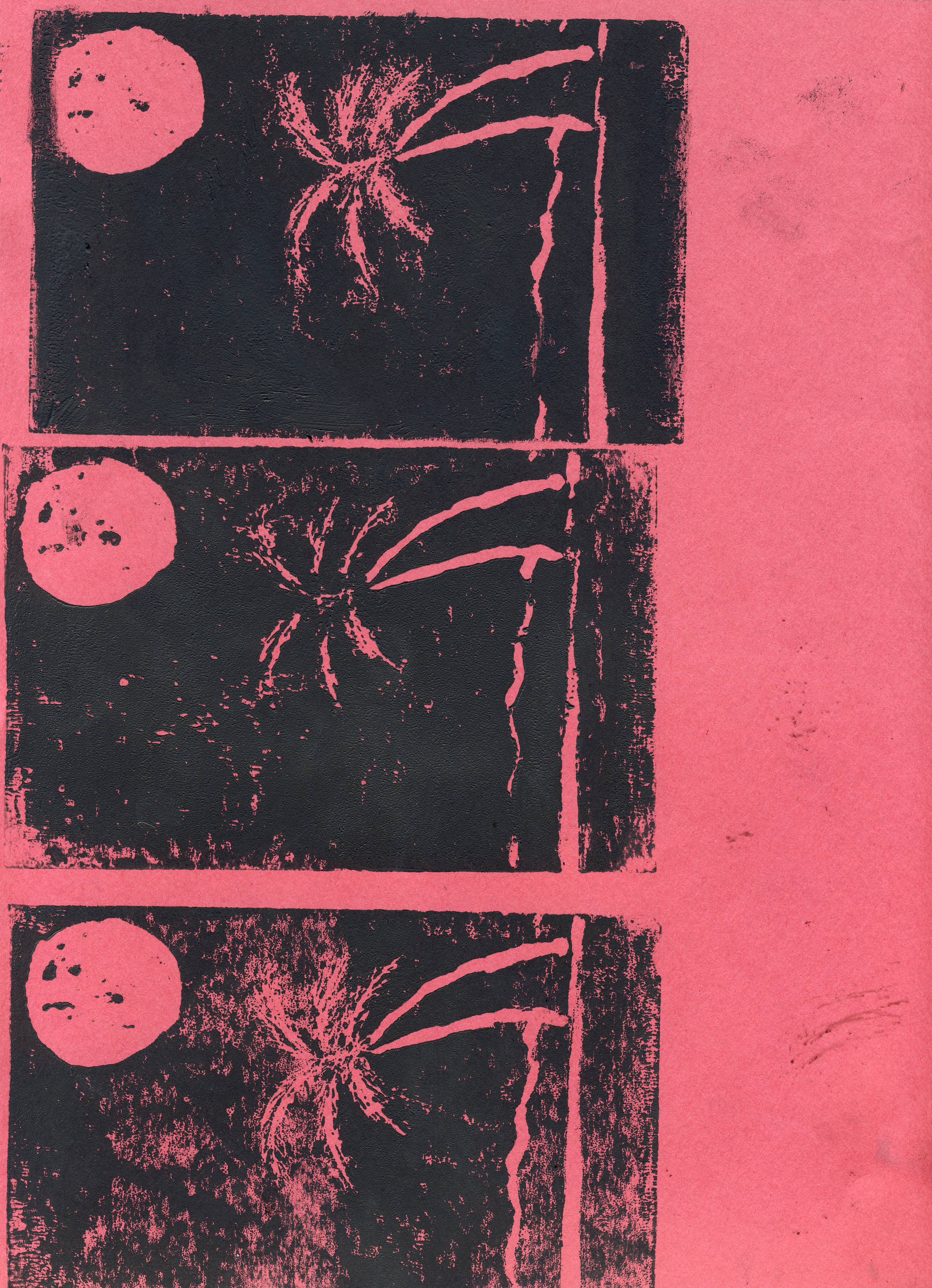 What I did to create this was I made a sketch of my design. Then after that I traced it onto another piece of thin paper to transfer onto the block I made the official print. I carved the image into the block. I had to put it under the iron to make it warmer and easier to use/carve it in. After that I did some test prints, and then the official ones. When I was doing the prints sometimes they came out too faint or too thick. My only inspiration for this work was my past drawings. My dad taught me how to draw palm trees and I have been doing it ever since. My work reflects me because the beach is one of my favorite places to go. I feel my work could be an influence on others who want to do print making to start if they want to. A technique that was important to this art piece was the tin lines on the leaves of the tree. I wish they showed up better on the print but they really make the tree look real. A new technique I learned was heating the linoleum to make it easier to cut into.