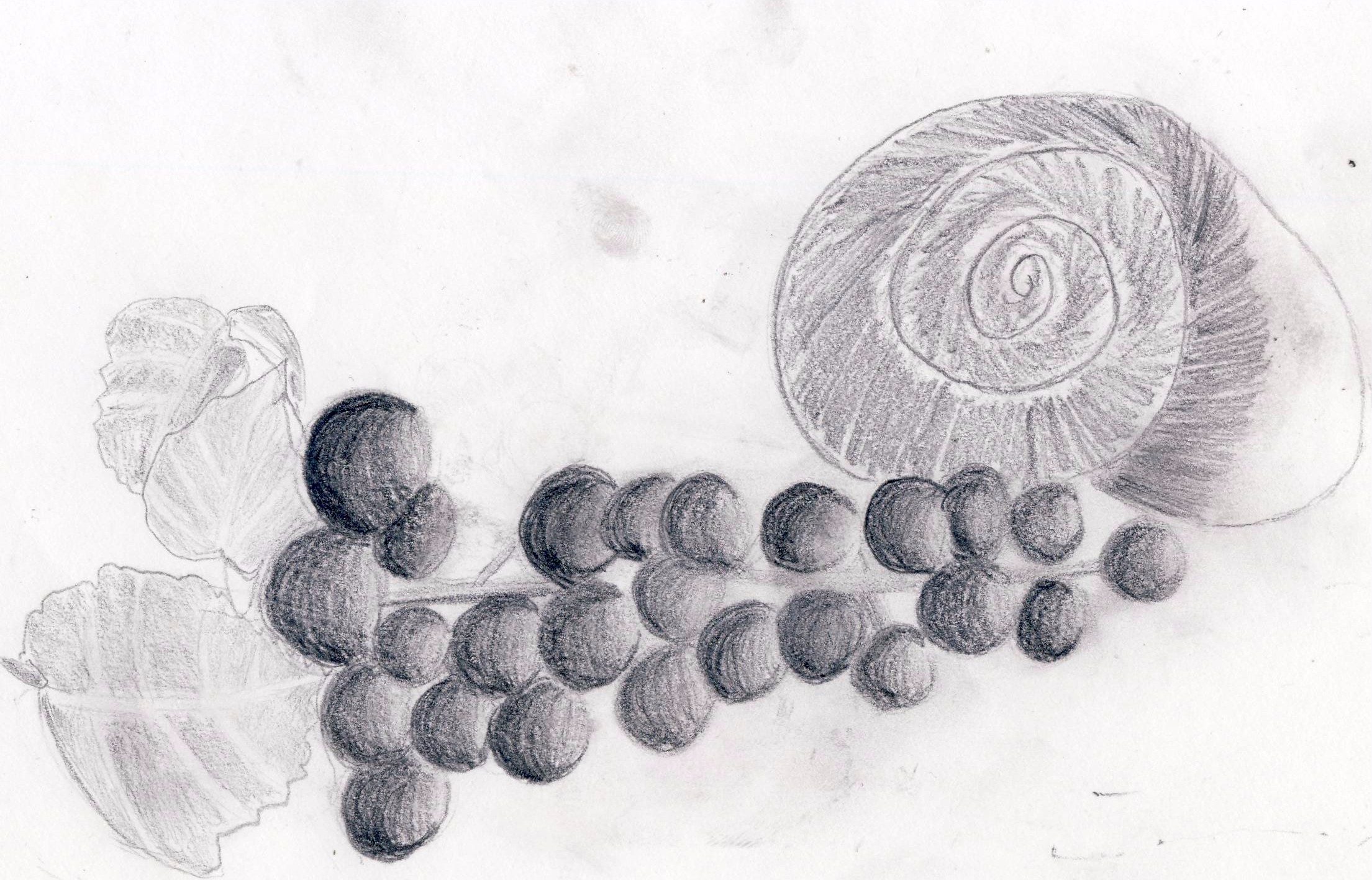 For my project this quarter, I did a still life drawing. The two items I drew were grapes and seashell behind it. I really tried to focus on the texture of the grapes and capture that in my drawing. Something I want to communicate through my piece is the detail in the work. It is something I am proud of.