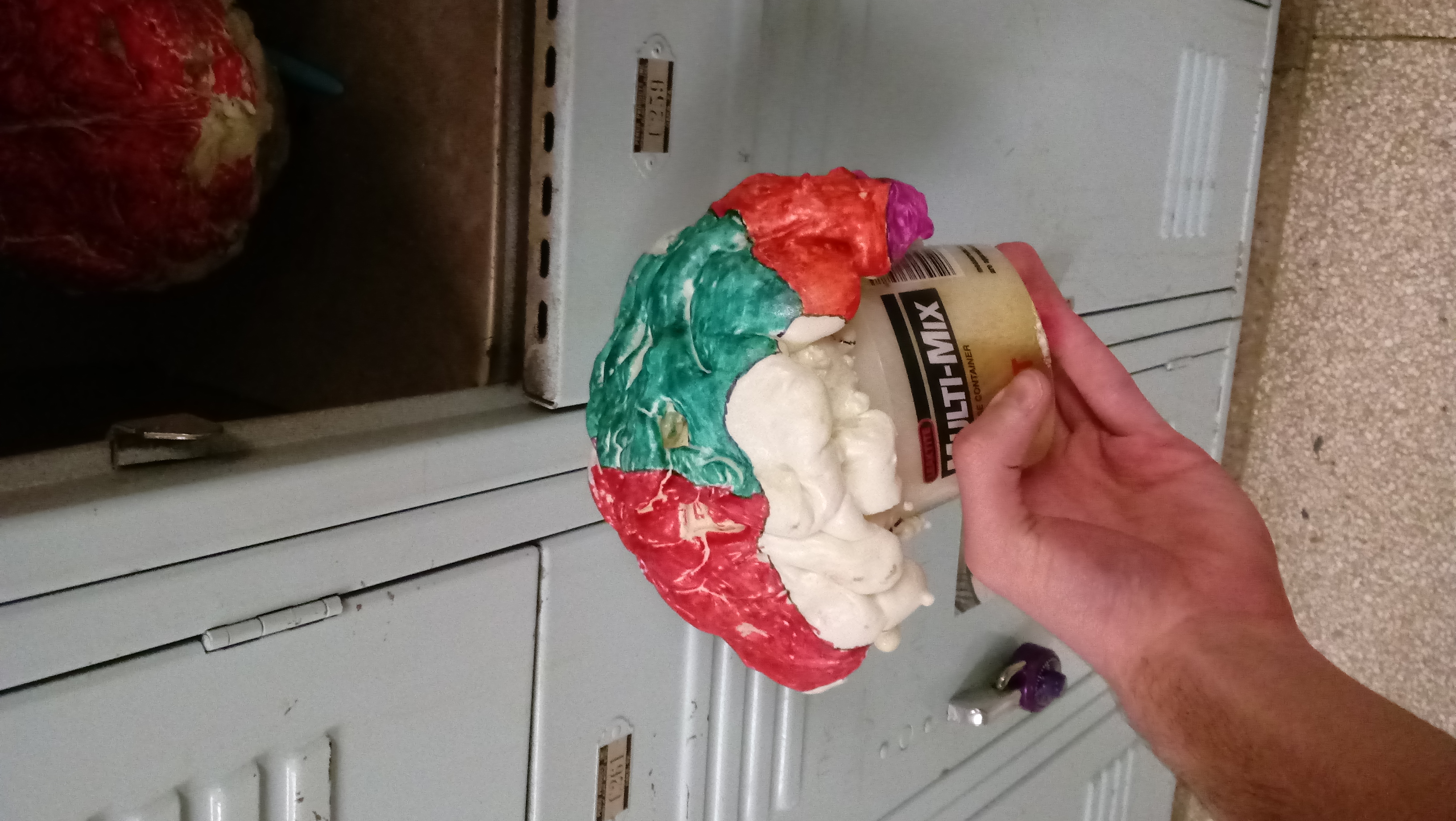 My sugar skull reflects my cat because it is painted red, yellow, and blue to represent the colors of her eyes. These colors represent her eyes. Even though her eyes were very blue I could always notice very dull sprinks of yellow and red in them as well. I decided not to include any gray on my skull because I never felt that the color of her fur fit her personality even though it was a very pretty tone of grey.