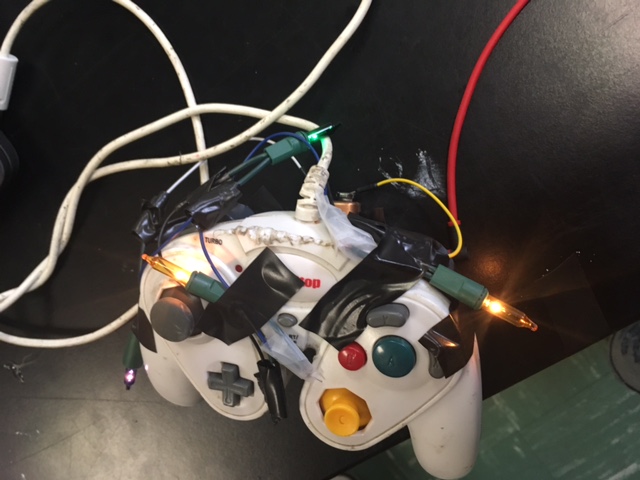 Me and glenn are lighting up a gamecube controller with Christmas lights and an open switch. This controller represents us because we both have been playing videogames since we were kids. We made a series circuit and attached it to the gamecube controller. We play games to escape reality and have fun.