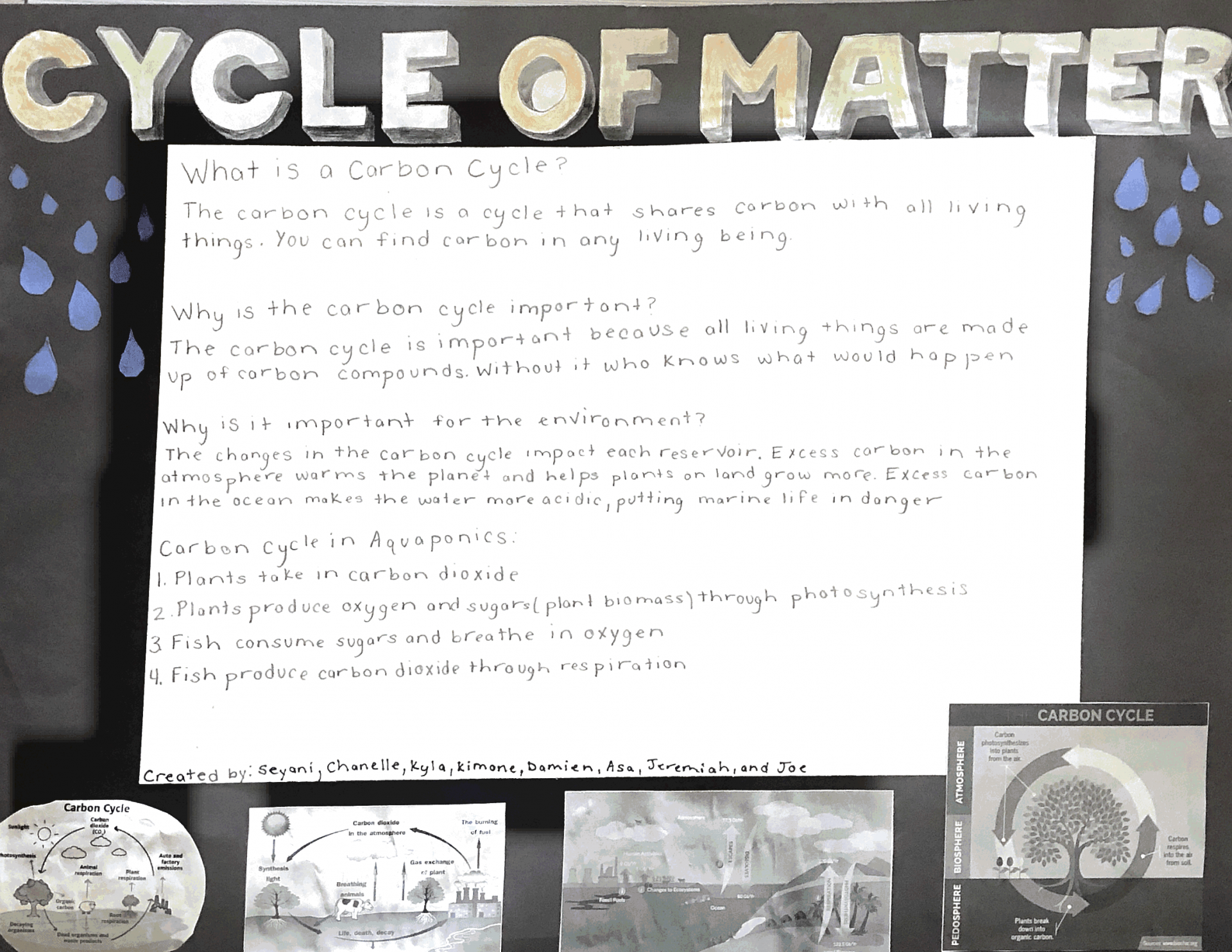 The atmosphere gives water to the hydrosphere. Geosphere, atmosphere, and hydrosphere help creatures live by providing land, water, air, heat, and gas.