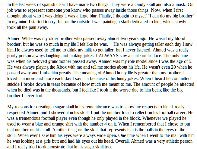 Luis & I picked a globe because we want to cherish the world. Since we live on the world, we might as build it. Luis is the one who came up with the idea of making the world. We used a blue hamster ball for the world and will put all 7 continents on the globe. In the end we want it to look like a mini Earth. “ We got the whole World in our hands” You like that don’t you Mr.Gray? Yeah: I know!