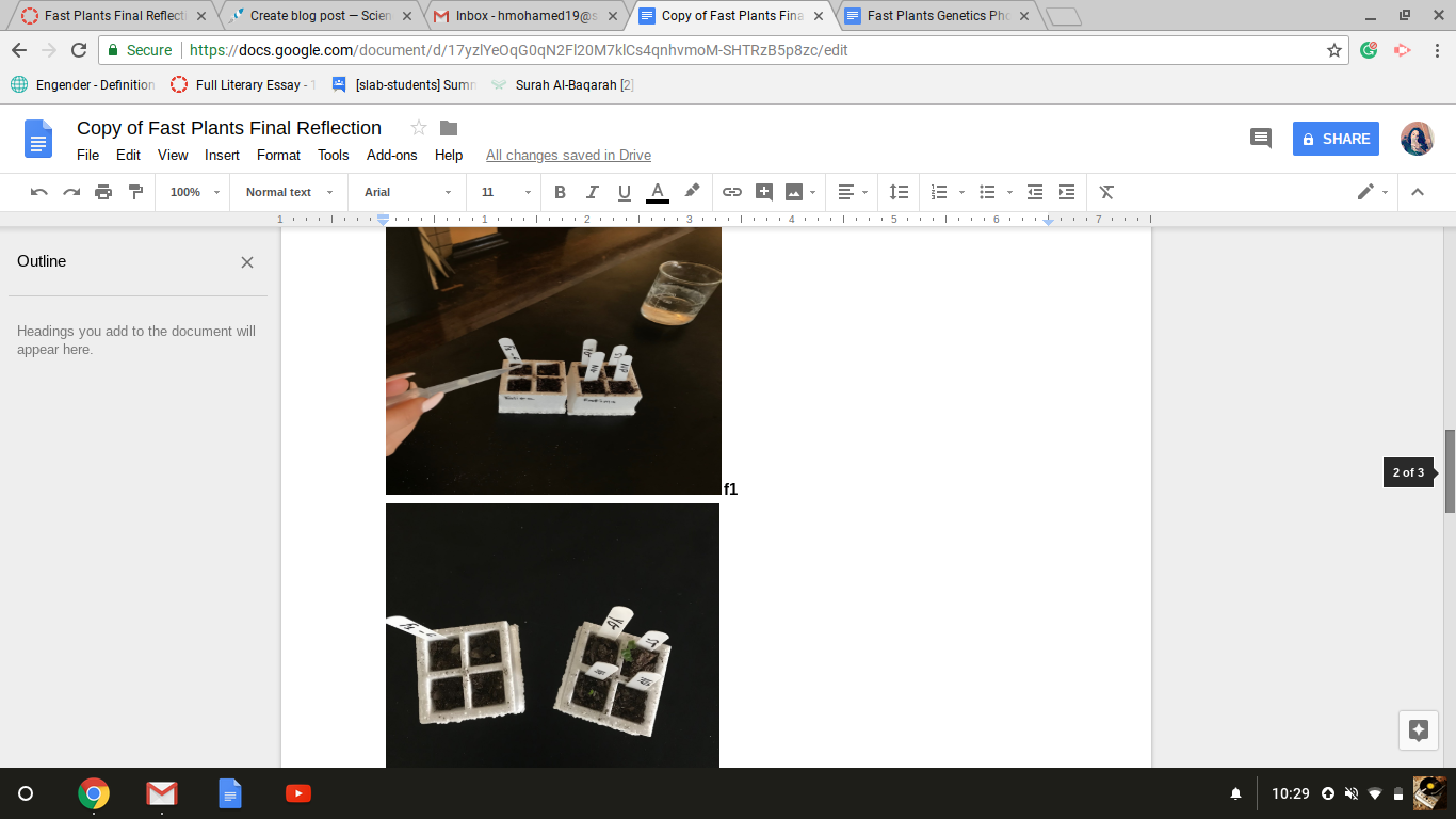 The F2 generation look like how we predicted them. We expected the colors to be different since we took the seeds from the first generation to plant the second generation. The F2 generation grew faster than the the parent generation. The first generation barely grew at all. Some of the factors that could have hindered our plants abilities to thrive is how much we watered them.