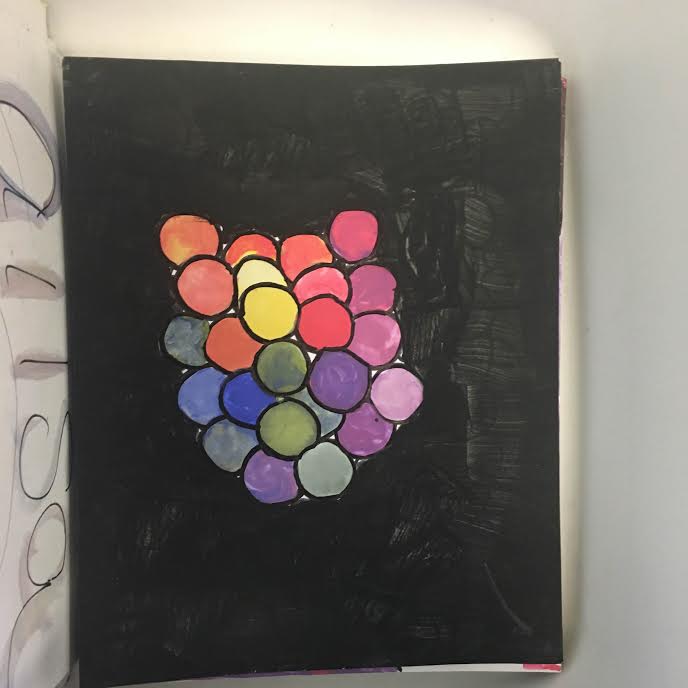 My work was created with more of a science art vision. I say this because I turned the color wheel idea into colorful atoms and I made my background all black. I expect people to get the idea through the circles being so close together leaving no room in between. My current world relates to my previous work because with any art piece I’ve ever created I made sure that it was some type of colorful. The whole concept of the colors is like my signature on any piece that i create.