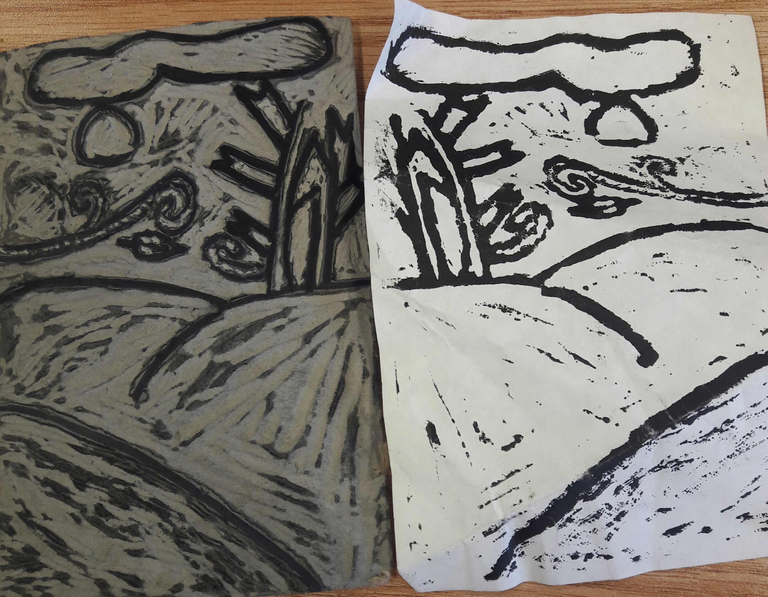 Linoleum cut process was easy. First I had to sketch out an idea of what I wanted to crave and I had to make sure the image would be able to fit on the linoleum so that was challenging. After sketching the picture I had to print it on the linoleum using carbon paper. When it printed on the linoleum I then had to go over the image a black sharpie marker. Then I had to heat up the linoleum with a iron so that it would be easy to crave. The I began to carve the part of my image that wasn’t gone over with the sharpie. After I was finish craving I then had to print my image on a piece of paper using ink and a roller to roll the ink over my image so that it will print of the paper.