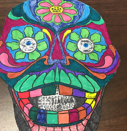I decided to do my grandfather for this project because he was one of the only person in my life that passed away. Dia de los Muertos is a day to celebrate the dead and to honor those who have died. My whole life I have been sad and disappointed that my grandfather passed away when I was so young. However, I think it is good that I do this project on him because it is time I stop being sad about his passing and use this time to appreciate him and celebrate him. Instead I get to remember the good memories that I had with him. My sugar skull can reflect this person because of everything I put on it. The main thing I remember him by, as I said before, is golfing. This is where I had my best memories with him and I enjoyed it. I didn’t know how to represent golfing on a small skull like this so I remembered the hat that he always used to wear. Everytime I saw him he wore a hat for the golfing club that he went to so I decided to make that hat and put it on the skull. The other thing that I represented him by was his old white hair. I put this on here because this is another thing that I remembered him by. It was always really funny making fun of his hair because of how ridiculous it looked. The only other thing that I tried to represent him by was his favorite color which is why I painted the skull. I asked a few people what his favorite color was and I never really got a clear answer so I decided to put the three answers that I received onto the skull. Yellow, blue and red. I wish that I could have added a few other things to my skull but I couldn’t fit much else onto the skull. The same reason goes for the mask that I created. In the mask there are several different reasons that I drew what I drew. The first of which being the flowers. I drew the flowers to represents life and how nice my grandfather was. Another thing is the flower at the top. I made this one of the brightest points on the mask because it shows how intelligent my grandfather was since it is where his brain would be. I also put a golf ball in his mouth because I needed to show his love for golf somewhere since that is how I remember him the most.