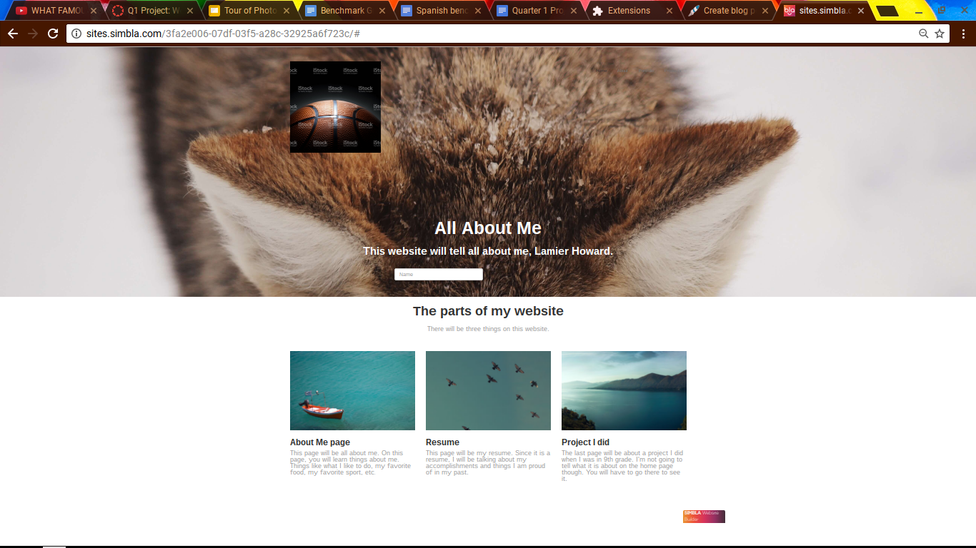 Q1- For this project, I had to create a website. The website had to be all about me. The goal of the project was to tell information on me so that people would know. I think this project was a failure. I say that because I didn’t achieve everything I wanted.