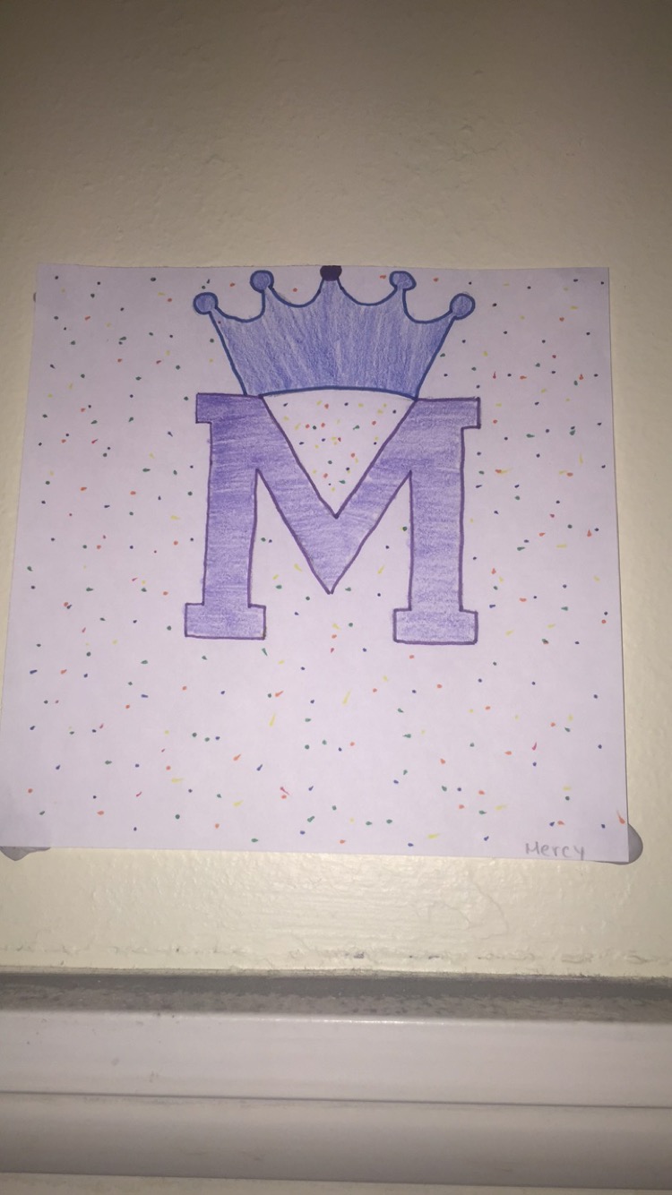 The meaning of the art work I created is that I'm queen M. The M is the initial in my first name. Also, it's my 2 favorite colors, blue and purple. The thing that inspired my work was the fact that I love that my full name has 3 M's. Also, everyone has a high confidence and think they all that and i like crowns so i drew one on top of my M. I chose the location I chose because it needed to be somewhere high because I stand high and tall. This project changed my perspective of art because I used to think art was just great beautiful drawings of animals people buildings etc. But now I know it can be more than that. It can be irregular shapes everywhere splatter pain anything from your imagination is art. This project changed my perspective of art as I travel the city because around the city I see a bunch of graffiti. I always used to think graffiti wasn't art but after watching that movie, it's like everything around me changed my perspective. I didn't even think about the people that did it could be famous. Honestly everyone has a different meaning of art and mine is what come from your imagination. It can be something real or something from your imagination.