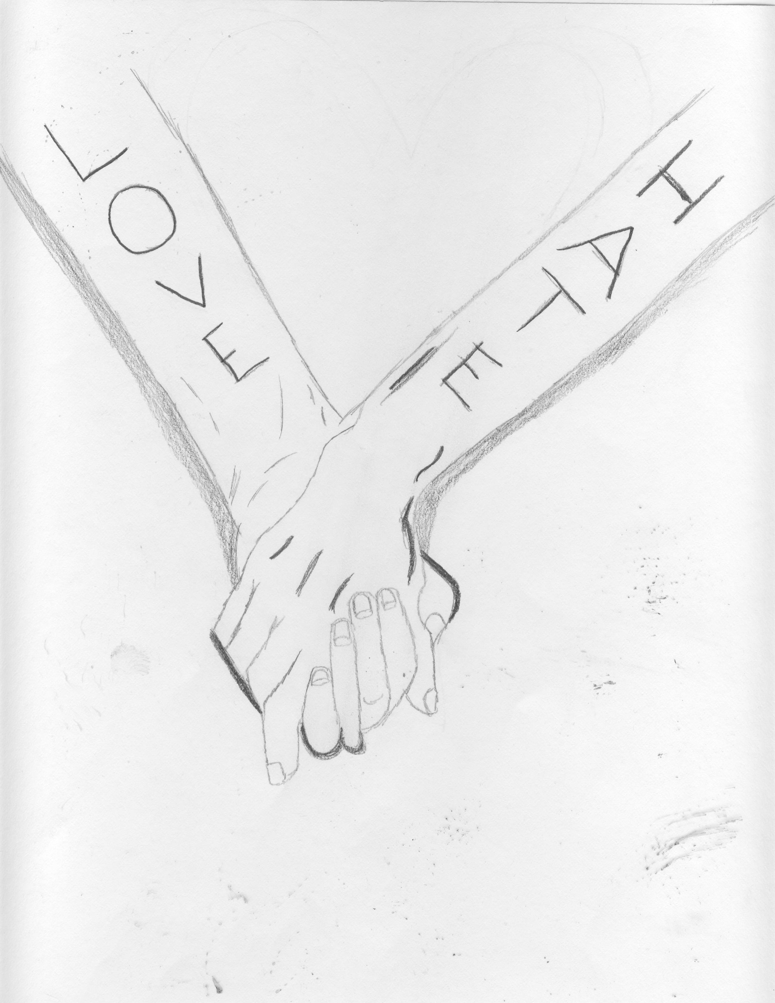 I chose this project because it seemed the easiest to do. My overall vision wasn't the love and hate with the arms. I first started off drawing jhene aiko but it became too hard. Then towards the end of the project I decided to change up vision. I wanted to get deep and personal with my drawing. I've been going through a lot right now and the words love and hate both describe how I feel. The hands are reaching out for help. My current work relates to my past work because all I did/do is draw things that represent me. My work reflects the world I live in because many teenagers dealing with a possibility of their parents getting a divorce are conflicted with very different emotions and I think the best words are love and hate.