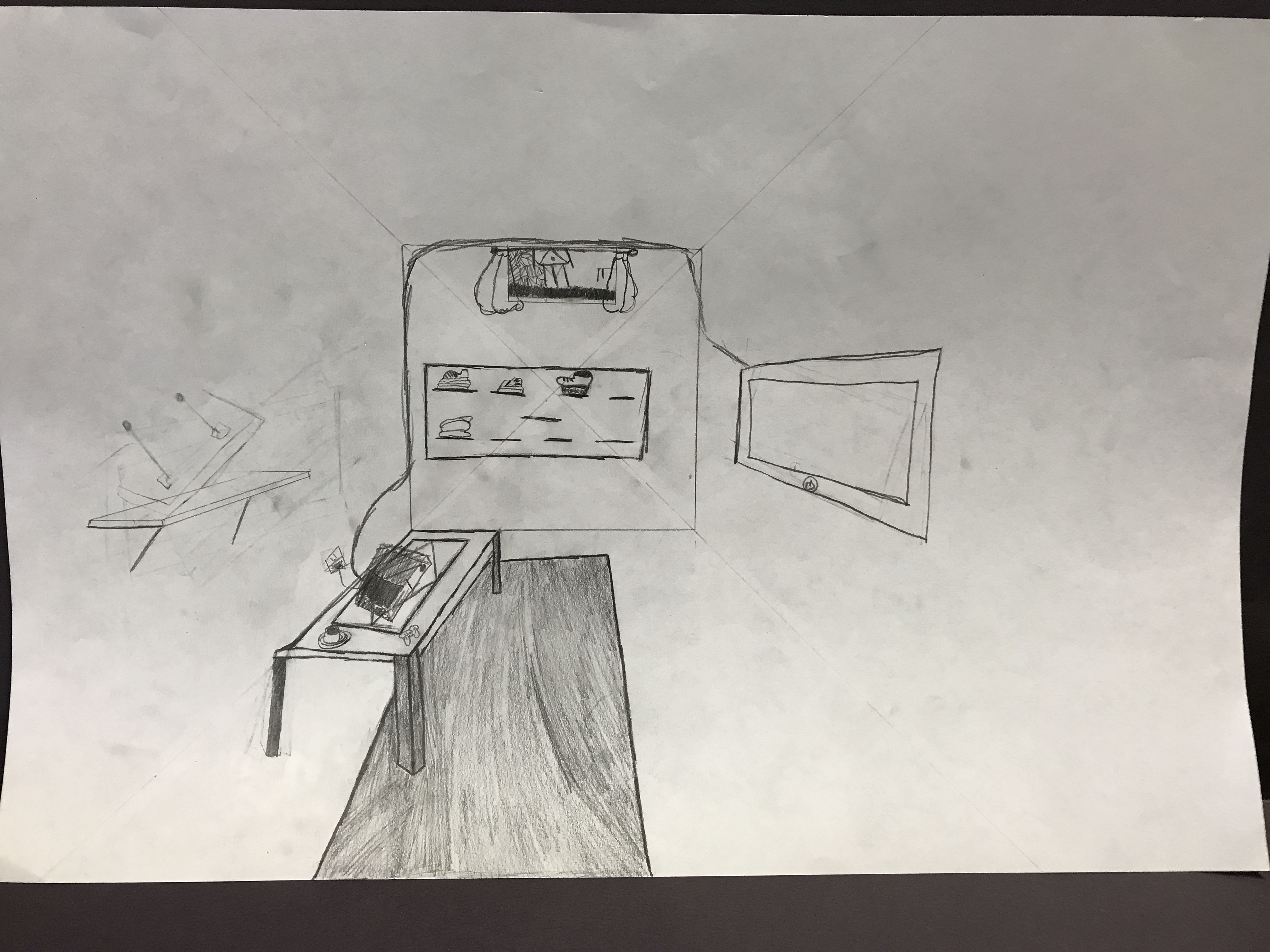 His name is Steve and he lives by himself and he is a gamer and a sneaker head. His basement is where he wants to be playing video games and keeps his sneakers. This is his basement and his sneakers are on the wall and his console is on his table and the TV is mounded to the wall and the rug was hand made by his mother and those are his three personal items.