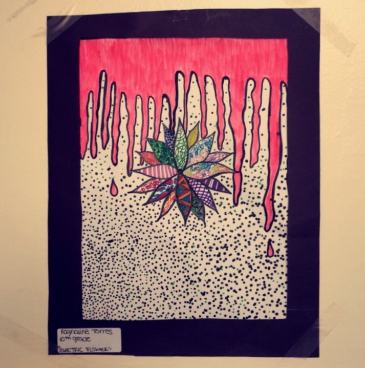 I purposely had many things going on with my creation because I didn't want the viewer to just focus on one thing but everything at once. Doing this project, I achieved how to add line,texture and drawing into one picture. My current work relates to past work more in a better way because I improved, I stayed more focused on having a neat project and making sure my work was meeting the expectations. I simply was just going to have the colorful flower picture but I wanted to go outside the box and add a dramatic background including texture with the bold dots I created. I also did not want my work to be dull so I used multiple colored markers to incorporate my theme of the " Electric Flower”. This project does not affect the world I live in but It does reflect who I am as a person.. Bright, variety of, out of order but put together at the same time. Its unique in its own way. Lastly a new technique I learned to do is to create my own frame for a picture by just using a ruler, scissors and some tape. This project has helped me express myself through colors, lines, texture and drawings.