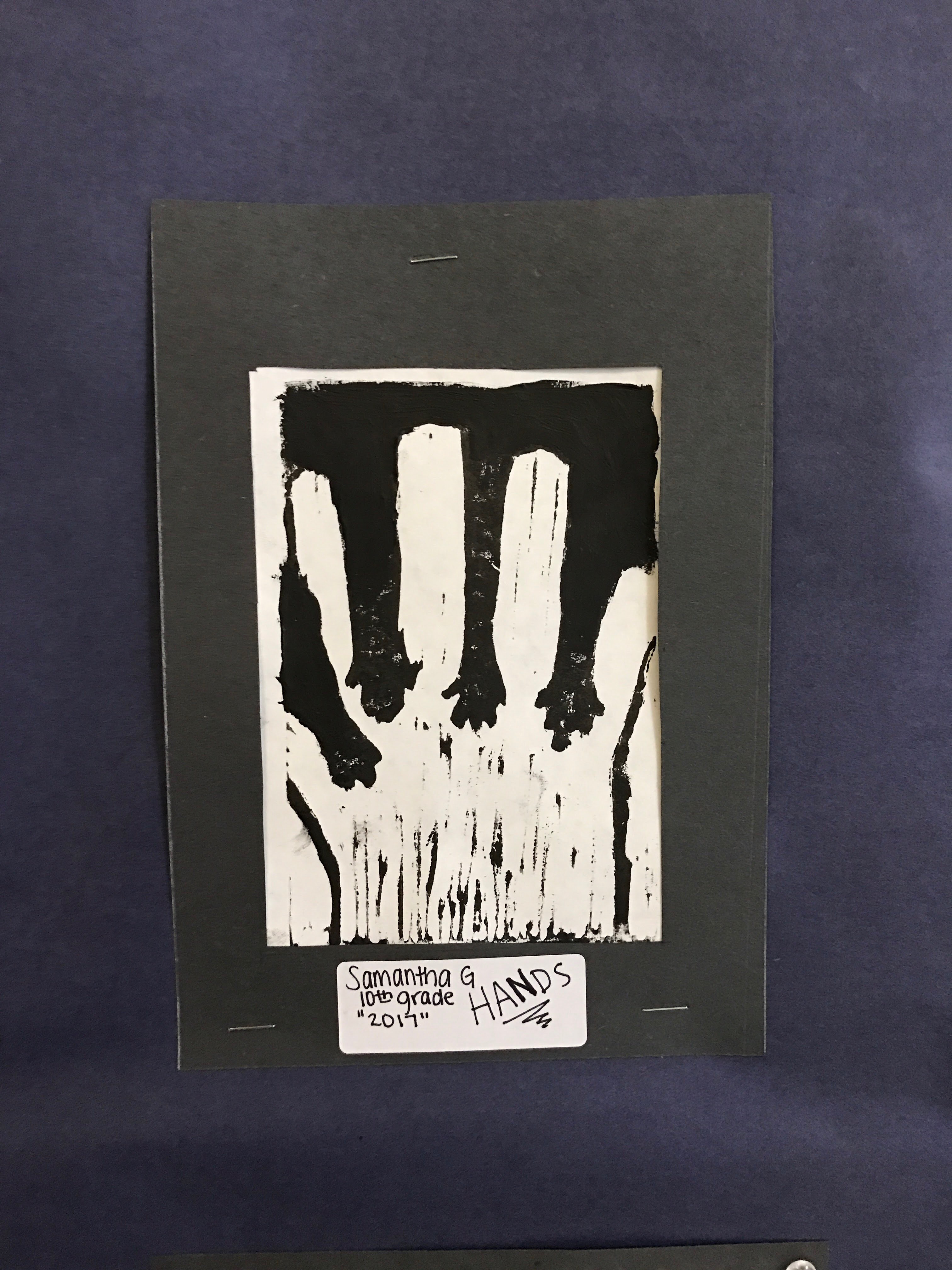 I have chose to create a Linoleum cut in press out a hands but i’ve chosen hands specifically because without hands where would we be? But the overall vision for this piece was to show my hands just five fingers but when you flip it upside down you see the other five within my five fingers. What i think this piece of art communicates to the viewers of this is that I think that they could perceive anything but if they were a deep critical thinker like be I would think that they would think where exactly would they be without hands , they basically help you do everything just like your legs. What I feel like I achieved through this creation art was some patience because you had to cut the right way and ona particular angle to get the exact picture that you wanted. This relates to my previous work because it has to do with carving lines and the process of taking your time because it won’t be right the first time so that’s why you try again until you get the work how you want it. My work fits into contemporary art because just like Qiu Deshu’s piece of art when you look at it you could think it’s one thing but when you look closer it’s something different or you can get different ideas from the piece of art just like mine.