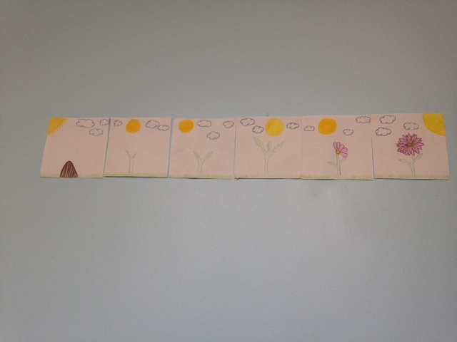 The title of our artwork is “Different Stages”. It means that everyone is different and everyone is developing in different ways and at their own pace. This artwork was inspired by our friendship. For a long time we have been trying to see how we can all be the same, until we realized that we are all at different stages and we came to a conclusion that from our different stages and we will soon grow into our full potential. So we all agreed to draw the a flower growing through its different stages until it was full grown.