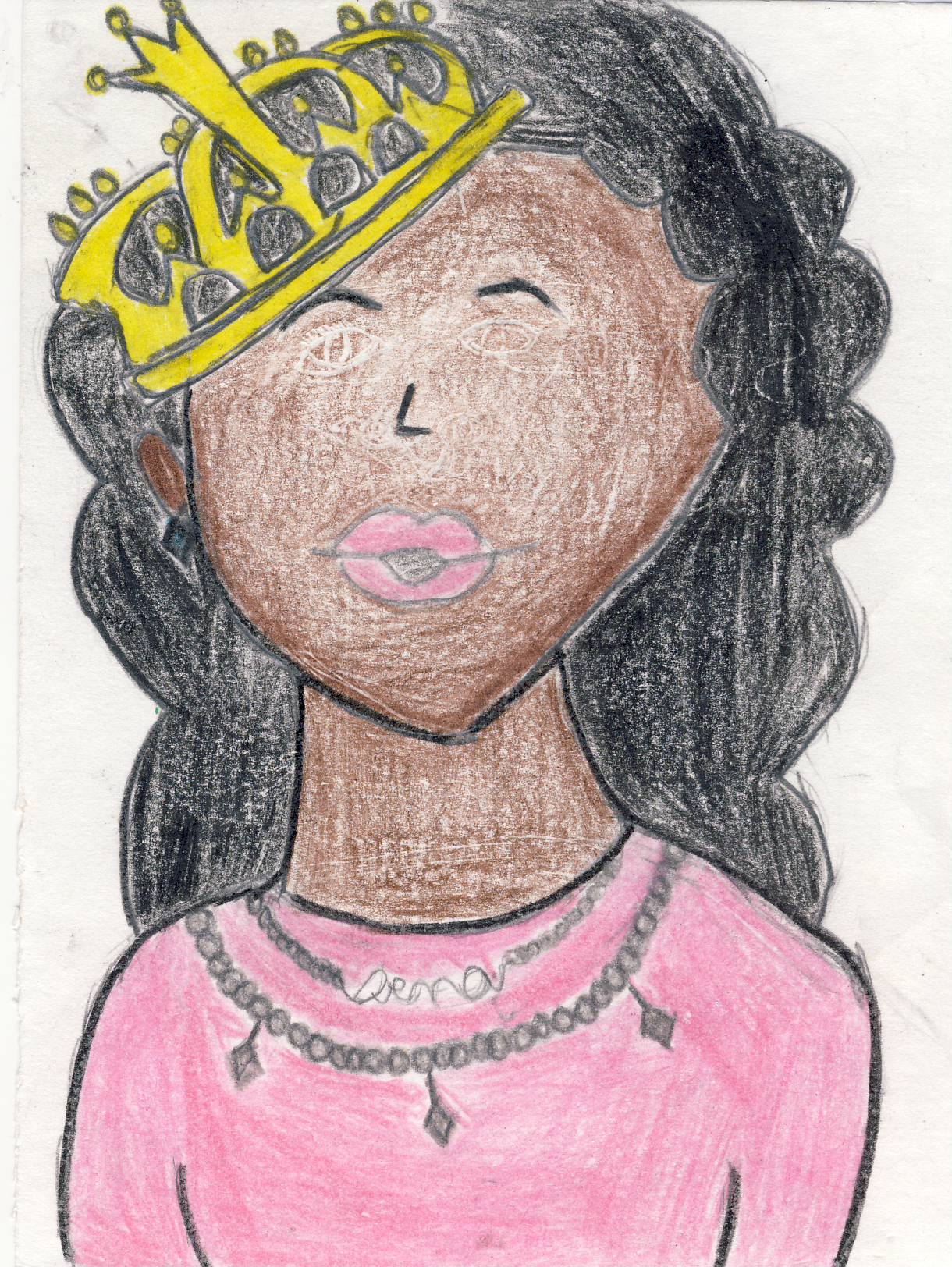 My drawing is of a girl , that I like to think is of me. I have placed a crown on top of the head to represent that she should be treated like royalty and that she has importance to other people. Also the girl doesn't have eyes because it shows that she tries not to judge people based on what they look like but what the character of the person is . The girl in the picture is black because I am a black girl and I wanted to show that black girls should be treated like a queen and have respect from everyone and for themselves. While I was making my drawing I first started off with the idea that I wanted to make a portrait of myself. Then I started to think about what I wanted to have in the picture represent when it is finally completed, that is how I came up with the ideas of the things that are in my drawing. I think that this drawing is very good for me because it showed myself that I can make a drawing that has meaning. For my drawing I used color pencils because I felt as though it would really making my drawing better and embellish it better than other materials. At first I started by testing the color pencils that I wanted to use, so that I knew which color I wanted to make everything. I am proud of the finally outcome of my drawing. I think it showed my growth in my art journey.