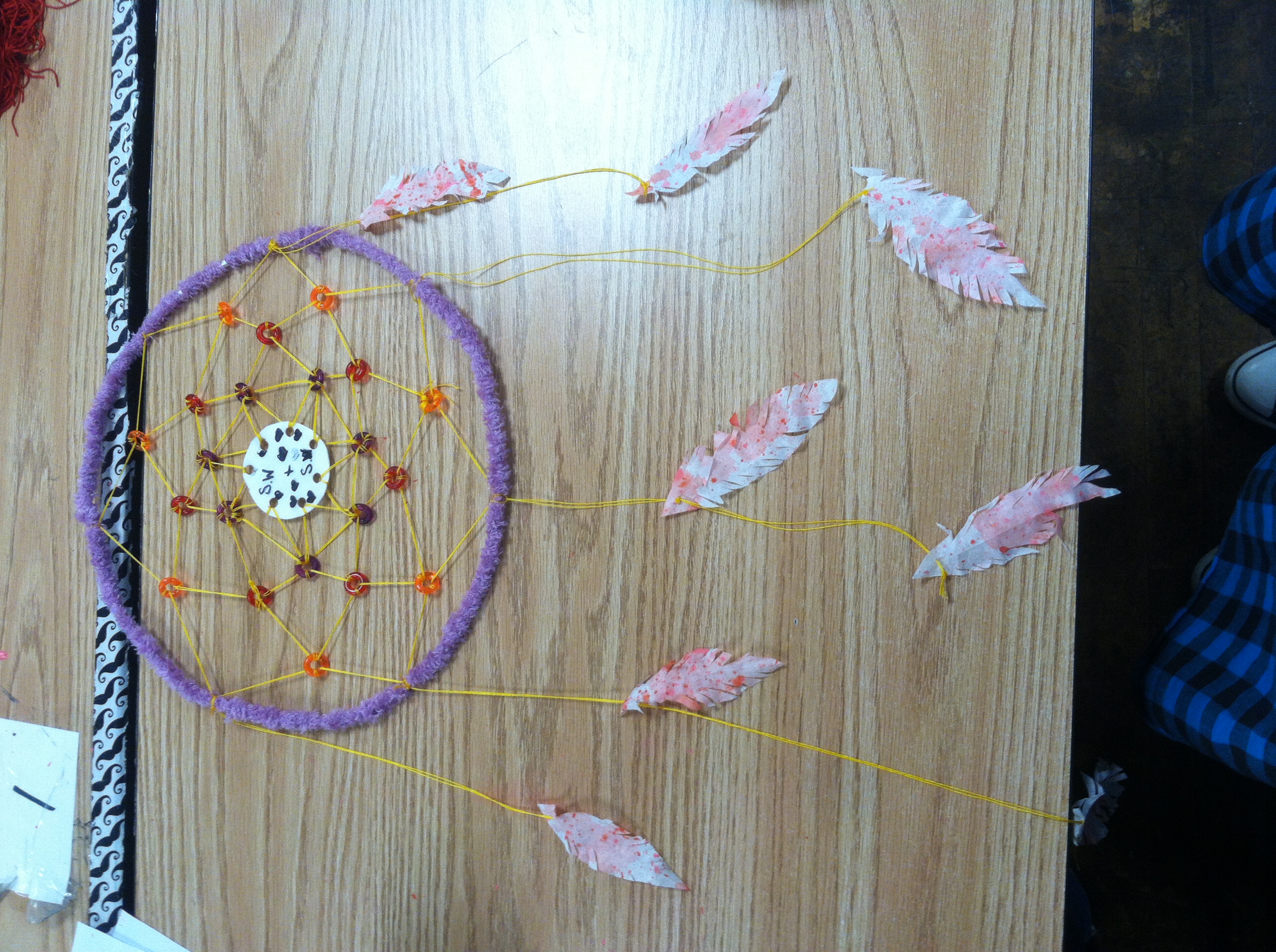 I did a DIY dream catcher with a hanger and some yarn and beads from a bracelet and some DIY feathers made out of coffee filter.