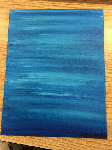 I created this piece of work for my girlfriend. Her favorite color is blue so I figured since I did the rest of my work for people special to me I should make one for her too. She loves it. My work actually came out way better than I suspected it to. I did it a little sloppy but a messy artist is a dedicated one! I wanted to have that galaxy effect at first but I felt like that was a little to complicated for me to do in such a short amount of time so I had just decided to go with a wavy kind of flowy background.