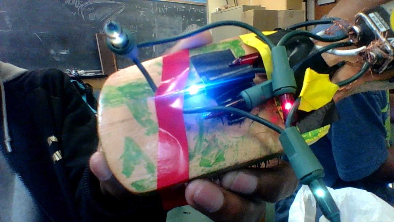 Artist Statement I made this because everywhere I go I carry a hair brush and connecting these leds to the brush gives it a glow.It makes the brush much cooler and makes it stand out more,why wouldnt you make something better that you use everyday :)