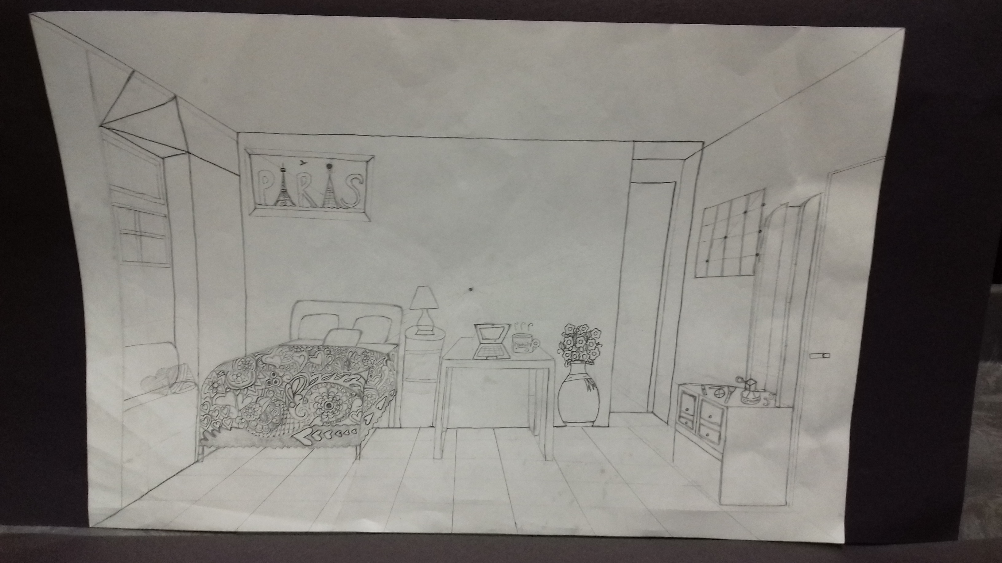 One Point Perspective Room Drawing