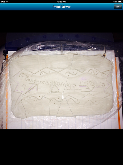For my Quarter 1 project I decided to do a clay model of a stone with different symbols from different tribes. Me as an artist likes to use different materials and methods for my projects so that's why this time I decided to use clay. I chose clay because to me its soothing and very fun to create things with. It is also a easy material to work with. I chose to use symbols and hieroglyphics because I also had an interest in for a while. The process of this project was very time consuming. First you have to state your idea/ make a proposal. Then you have to research your project idea and its mediums. Next you start off with a prototype to see how your finished product should come out. Once you're satisfied with the prototype then you can start you final product. I chose the symbols of happiness, Guidance, and Healing. I chose those symbols because I feel as though those terms and the keys of life. Without guidance your lost without happiness you're nothing, and without healing your stuck in the same mentality and trauma you've been in.