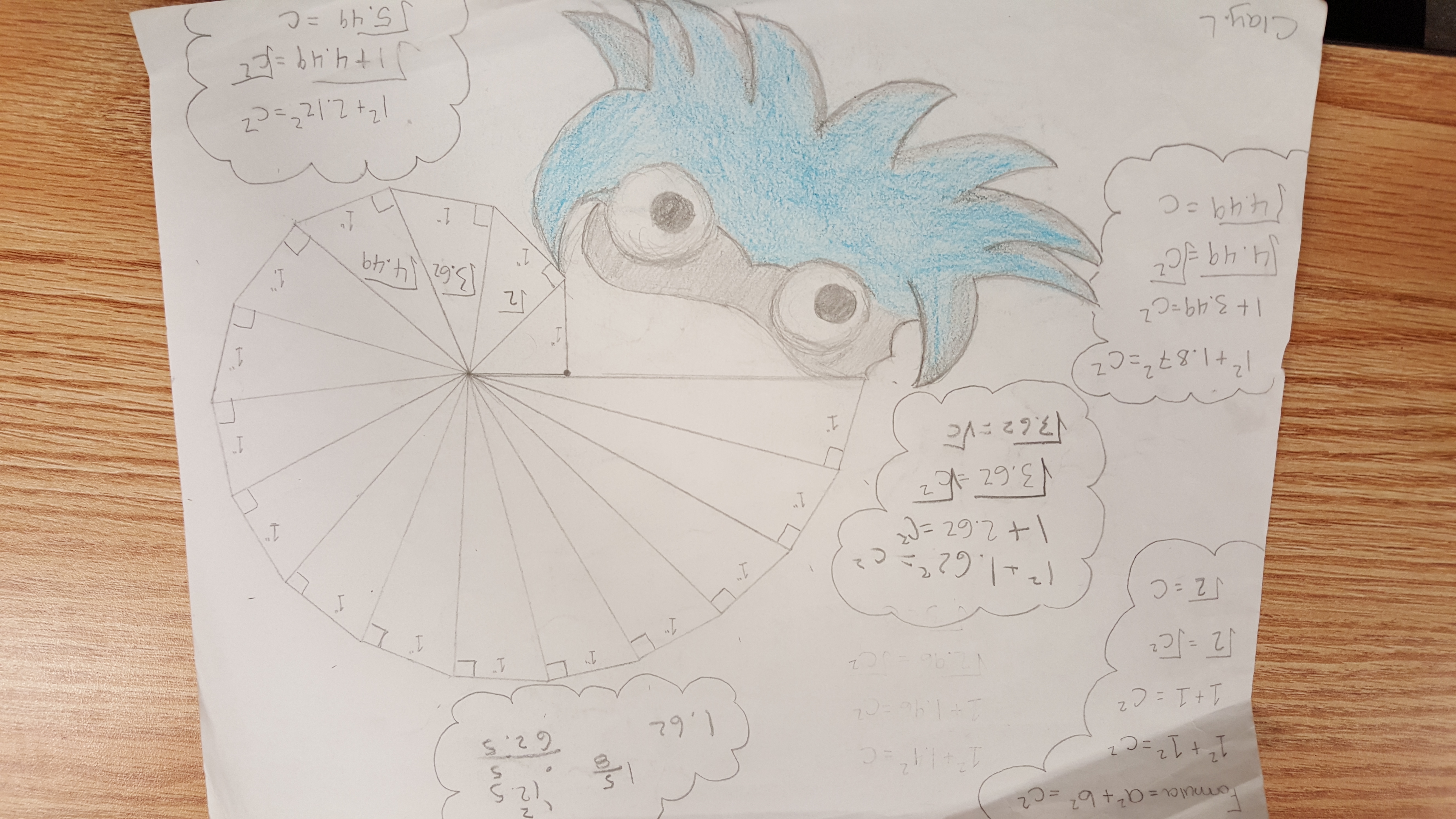 Creating my spiral took a lot of precision. First I began making a right triangle, with Angle a and b to be both 1 inch. Then I connected them to make a full right triangle. Once that is done, I made another 1 inch line, connecting the previous triangle to start on the creation of the next. I keep that process going, until eventually it gradually increases in its hypotenuse and reaches its max.