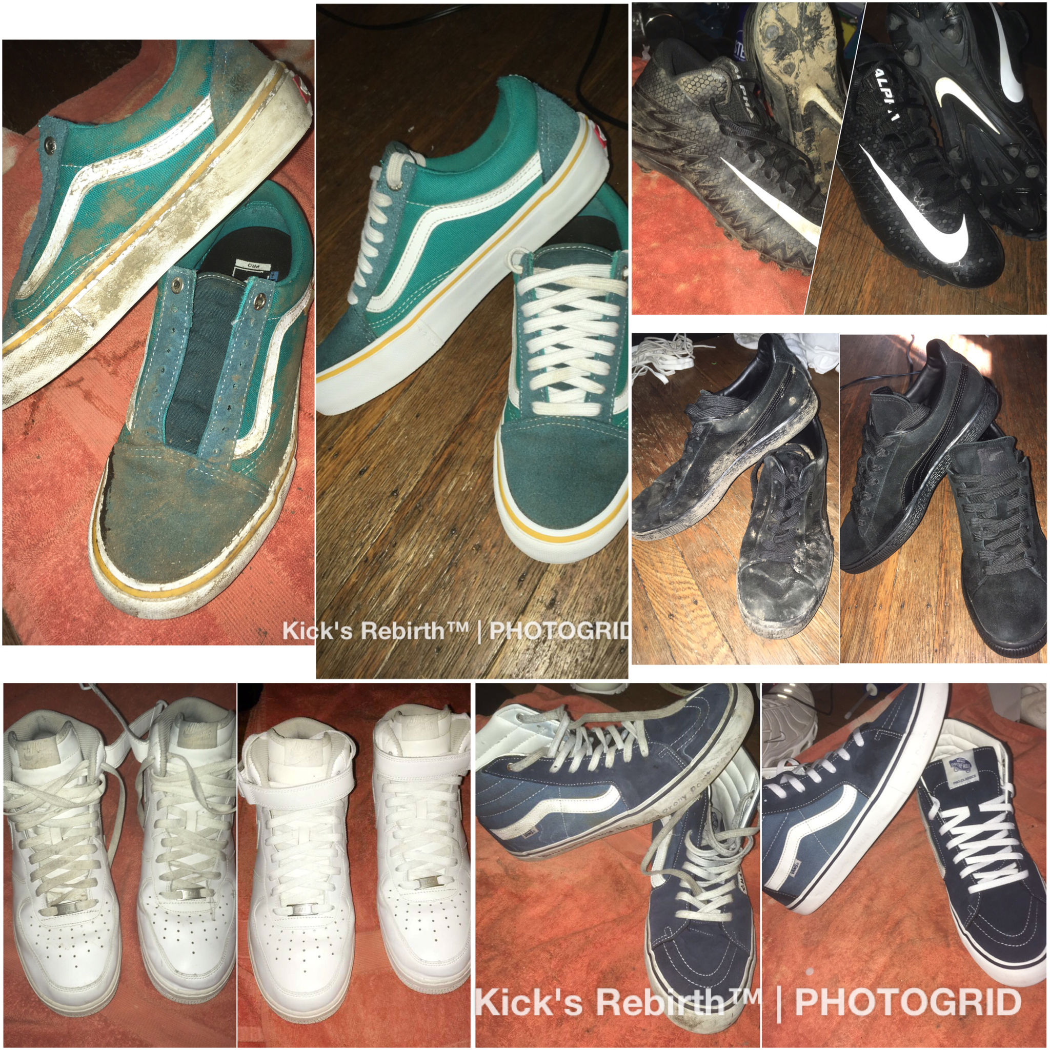 Back in the 8th grade, I had a specific pair of nubuck sneakers that was my favorite which I did everything to keep clean. One day I had worn them to gym class and they ended up with scuffs, dirt patches, and random marks. This made me take the sneakers home and use basic materials to attempt to clean them. When my family saw the results, they started to ask me to clean their sneakers as well. Kick’s Rebirth™ is the product of a sneaker cleaning hobby of mine that began after cleaning that one pair of sneakers in the 8th grade.