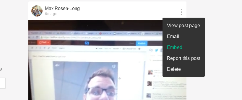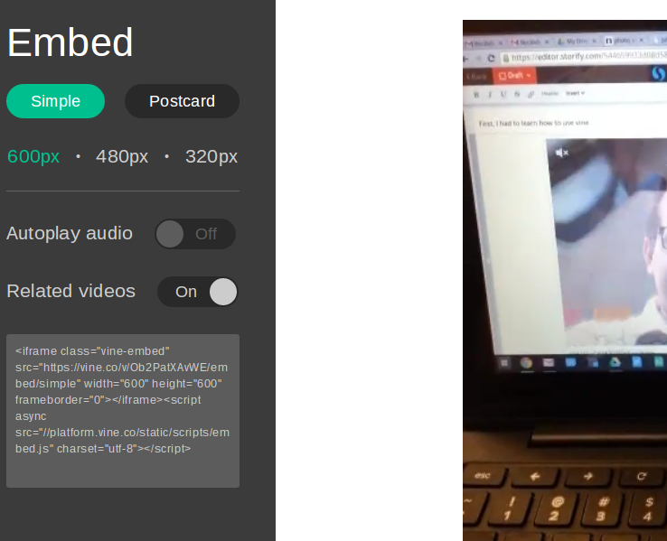 3. Go to the first vine video you want, and click on the three dots on the upper right corner. Then click "embed".
