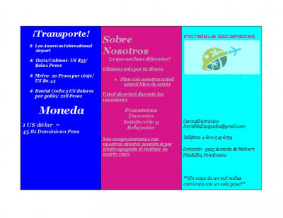 CorreoElectrónico- IncreíbleEscapadas@gmail.com Teléfono- 1-800-519-6754 Dirección - 5925 Avenida de Malvern Filadelfia, Pensilvania **Un viaje de un mil millas comienza con un solo paso** |