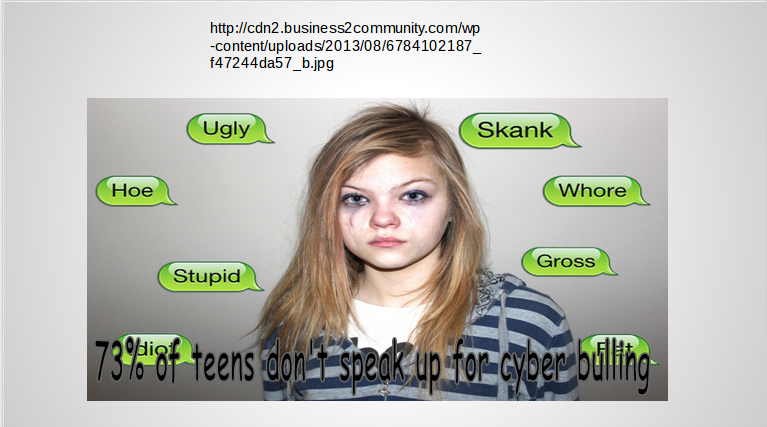 I chose this pictures because this is something that in America most people have in their home or have access. I believe that people that are given access to internet and computers have to make a choice, whether to responsibly use it or abuse it. You can do endless things on the internet now, which makes it easier easier to cyberbully others. Because there are no